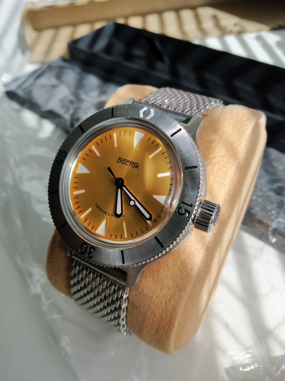 Вложение 2983853 Вложение 2983854восток - SE 420B34 Пол: мужские Год покупки: 2020 Новые часы, состояние: N (новые в пленках) http://forum.watch.ru/images/market-question.png Цена: 8 600 руб. (продажа) Коробка: есть Документы: есть Амфибия SE 420B34 от Меранома. Абсолютно новые. Покупались двое разных моделей для выбора, вторые остались, эти в продажу. Наручные механические Часы Восток Амфибия SE 420B34. Механизм 2415 с автоподзаводом. Автоподзавод обеспечивает отсутствие необходимости завода наручных часов при постоянном ношении. Запас хода при полном заводе, не менее:31 час. Также есть ручной завод -т.е. можно вручную завести часы, если их не носили какое-то время до этого. Завинчивающаяся заводная головка (сталь). Водозащита 20 атм (200 метров) - т.е. можно использовать для занятий дайвингом. В комплекте: часы, паспорт на изделие, классическая пластиковая индивидуальная упаковка или картонная упаковка. Производство ОАО Чистопольский Часовой Завод Восток(Россия). Гарантия 1 год. Срок службы 10 лет. Корпус изготовлен из высококачественной нержавеющий стали. почта по РФ +250 |