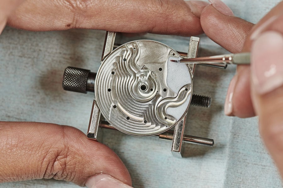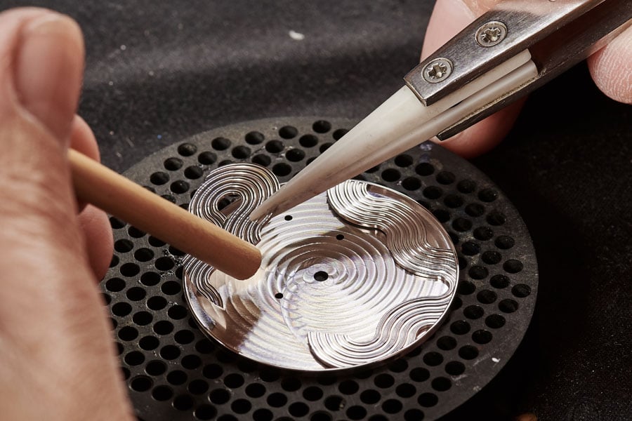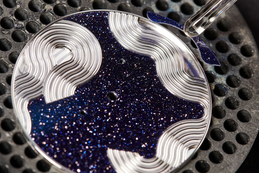 Дизайн часов коллекции Arceau был придуман Анри д’Ориньи (Henri d’Origny) еще в 1978 году, его основная особенность заключается в том, что две верхние и две нижние дужки, обычно крепящих корпус к ремешку, были заменены двумя дугообразными (причем асимметричными - верхняя больше нижней), напоминающими по форме стремени конской упряжи. А тема, связанная с лошадями, как известно, традиционно является источником вдохновения для творений Hermès. Новинка имеет круглый полированный корпус, изготовленный из 18-каратного белого золота, диаметром 38,0 мм, водонепроницаемый до 30 метров. На торце рифленой заводной головки, расположенной на 3 часах, выгравирован логотип бренда HERMÈS. Безель гладкий или инкрустированный бриллиантами. Сапфировое стекло с антибликовым покрытием защищает переливающийся перламутровый или блестящий авантюриновый циферблат с изображениями стилизованных лошадей, написанных итальянским художником Джанпаоло Паньи (Gianpaolo Pagni), который живет в Париже. Крошечные миниатюры и окружающие волны выполнены искусными мастерами Métiers-d’Art из тонкой вафельной золотой пластинки с большим вниманием к деталям. Этот процесс занимает целую неделю. Стрелки на циферблате листьевидной формы, изготовлены из белого золота. Модель оснащена мануфактурным швейцарским автоматическим механизмом H1912, разработанным совместно с Vaucher Manufacture (компанией, 25% акций которой принадлежит Hermès), толщиной 3,7 мм, с балансовой частотой 28800 полуколебаний в час (4 гц), 50-часовым запасом хода, с функциями индикации часов и минут (посредством соответствующих центральных стрелок). Калибр отлично отделан и декорирован. Поставляется на ремешке из кожи аллигатора с застежкой из 18-каратного белого золота. Цена каждой из двух версий модели Hermès Arceau Cheval Cosmique составляет по 49000 евро. Вложение 2984988Вложение 2984989Вложение 2984990Вложение 2984991 Источник: https://www.watchtime.net/uhren/herm...eval-cosmique/ |