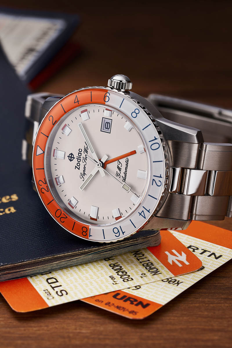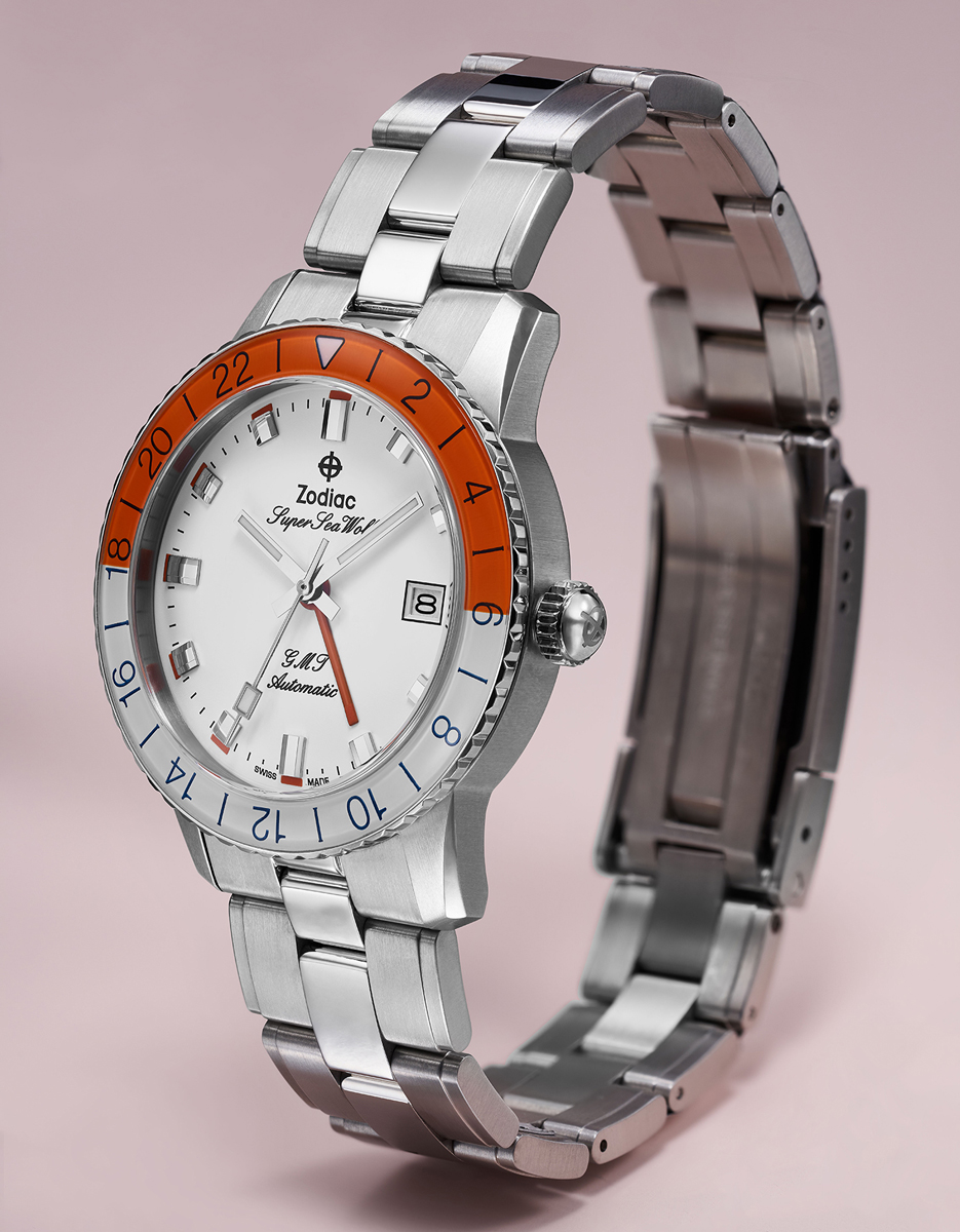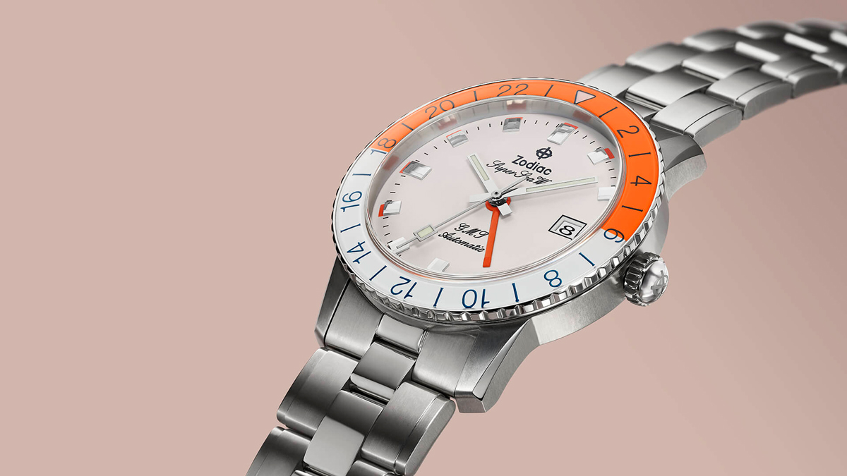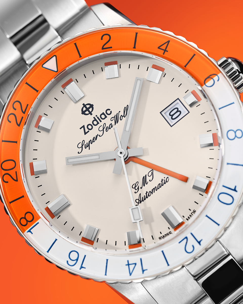 Компания Zodiac выпускает в продажу модель с усложнением в виде второго часового пояса Super Sea Wolf GMT «Sherbet». Часы, выполненные в винтажном фирменном стиле, является частью дайверской линейки Super Sea Wolf и выделяются яркими оранжевыми акцентами в цветовом оформлении.