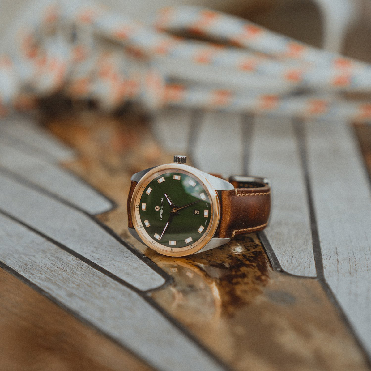 В коллекцию добавлены два новых цвета циферблатов: сатинированный темно-зеленый и ледяной белый. Корпус доступен из нержавеющей стали или из нержавеющей стали с безелем из розового золота. Благодаря завинчивающейся заводной головке и задней крышке водонепроницаемость гарантируется до 100 м. Модель с зеленым циферблатом комплектуется либо стальным безелем, либо безелем из розового золота. Новые итерации по-прежнему используют заполненные люминофором фирменные накладные часовые маркеры и стрелки, цвет которых соответствует материалу безеля. Favre Leuba Sky Chief Date 43 оснащены механизмом ETA 2824-2. Этот проверенный и надежный автомат работает на частоте 4 Гц (28 800 пкч) и имеет запас хода 42 часа при полном заводе пружины. Часы поставляются на ремне из телячьей кожи с пряжкой или на стальном браслете. Розничная стоимость составляет 1 950 швейцарских франков за стальную модель на кожаном ремне, 2 150 швейцарских франков за стальную модель на браслете и 3 950 швейцарских франков за модель с золотым безелем на кожаном ремне. Вложение 3016508 Вложение 3016509 Вложение 3016510 Вложение 3016511 Вложение 3016512 Источник: https://monochrome-watches.com/favre...d-white-dials/ |