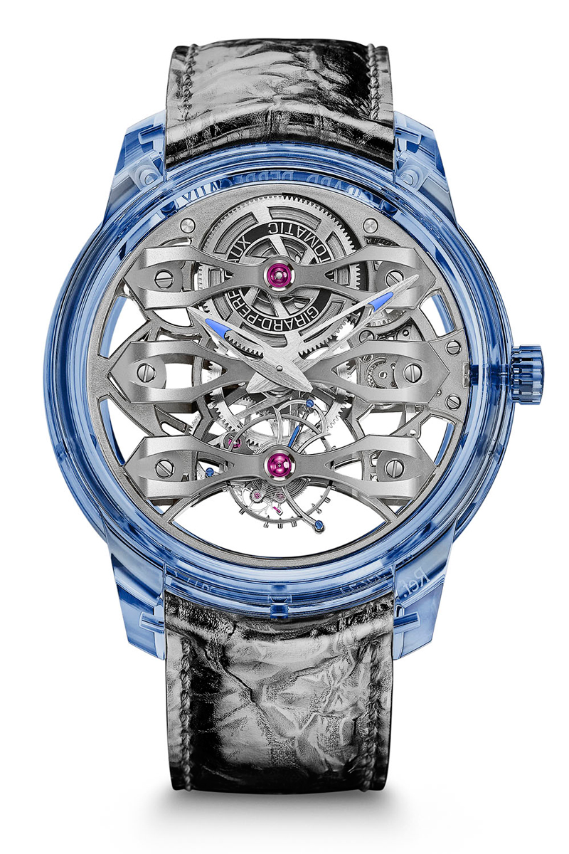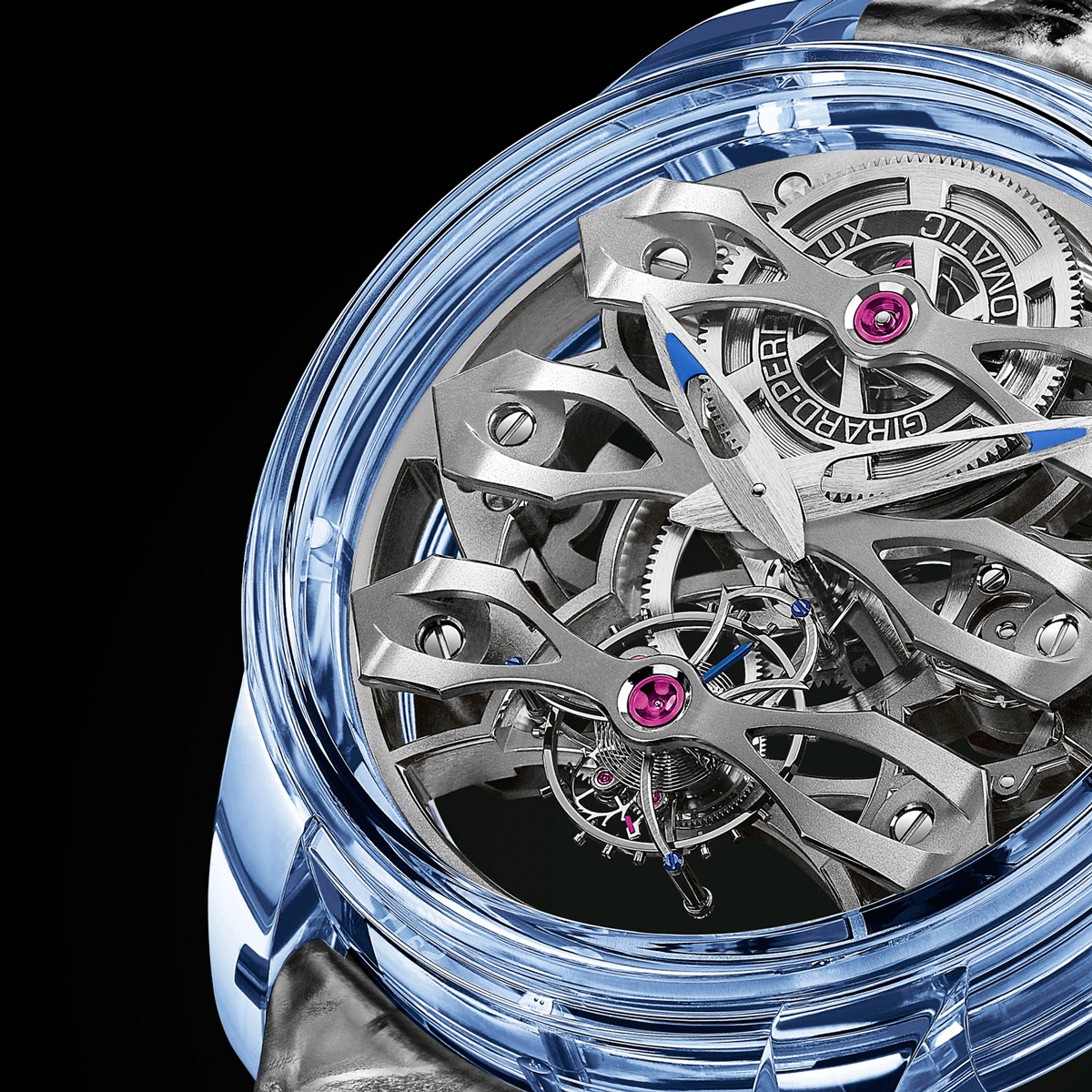 Girard-Perregaux выпускают обновленную версию модели Quasar, впервые представленной в 2019 году. Новинка, заключенная в корпус из синего сапфирового стекла, получает название Quasar Azure. Модель Quasar представляет из себя футуристическую версию культового турбийона Girard-Perregaux с тремя мостами, занимающего особое место в истории Girard-Perregaux в частности и в истории часового искусства в целом.