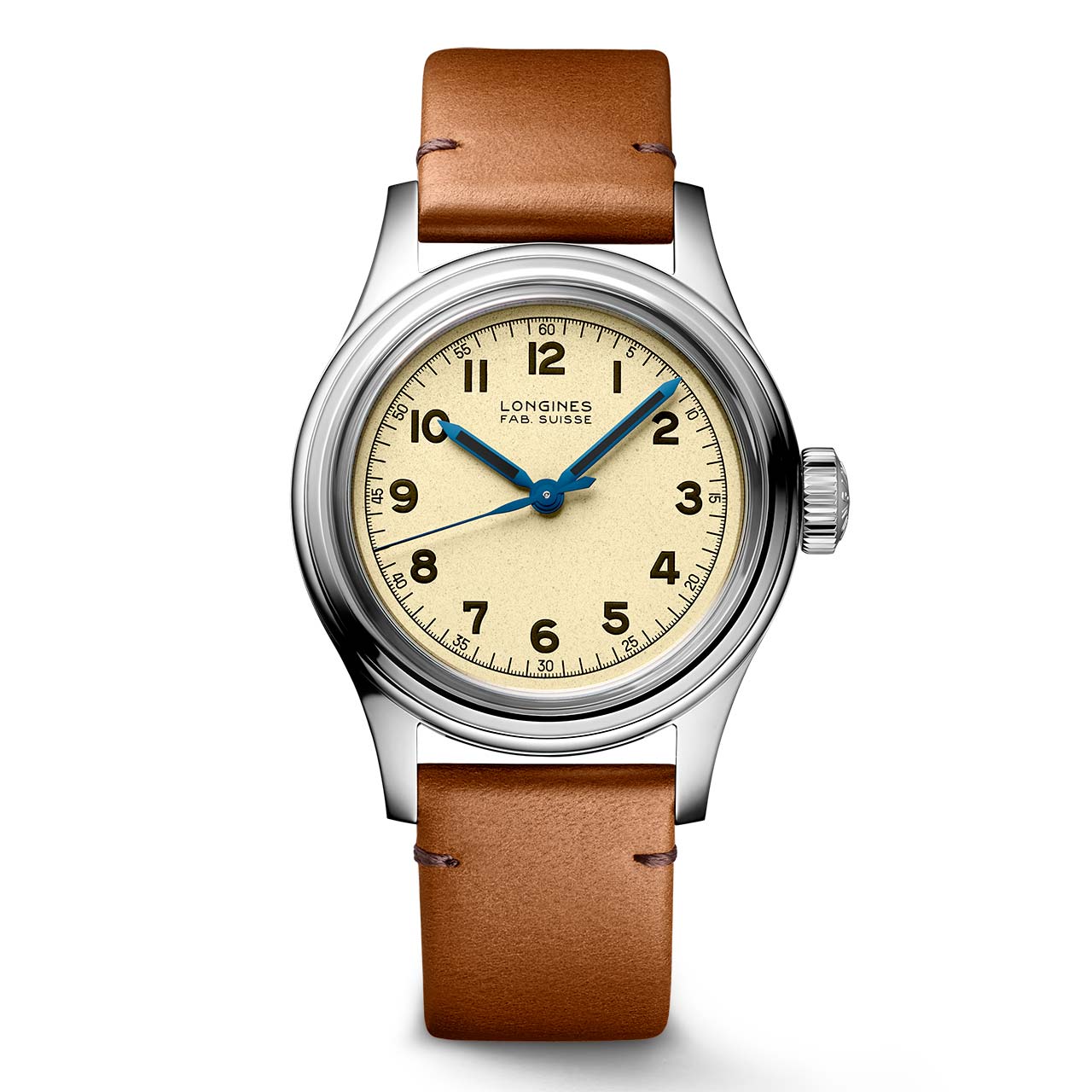 Скрытый под глухой завинчивающейся задней крышкой, автоматический калибр L888.5 (на базе ETA A31.L11) работает на частоте 25 200 пкч и гарантирует запас хода в 64 часа. Механизм оснащен кремниевой пружиной баланса для повышения точности и устойчивости к магнитным полям. Новые часы Longines Heritage Military Marine Nationale (ref. L2.833.4.93.2) комплектуются ремнем в винтажном стиле из кожи коньячного цвета. Стоимость модели составляет 1 950 евро.