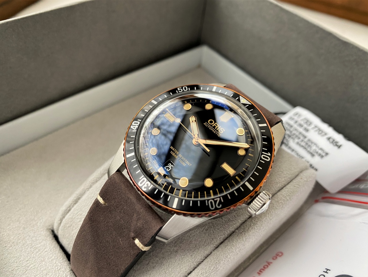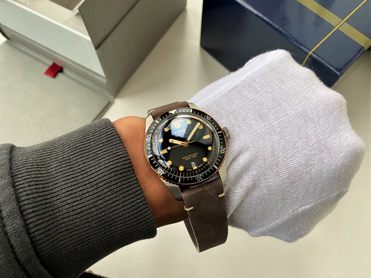 Пол: мужские Год покупки: 2020 Новые часы, состояние: N (новые в пленках) http://forum.watch.ru/images/market-question.png Цена: 105 000 руб. (продажа) Коробка: есть Документы: есть https://www.haritidis.gr/media/catal...-haritidis.png https://www.oris.ch/data/23434_01733...orizontale.png В продаже прекрасные, винтажные дайверы от Oris из коллекции Sixty-Five. Модель 733 7707 4354 LS. Выпуклый сапфир, безель с бронзовой вставкой, кожаный ремень, золотистые метки и желанный диаметр 40мм - все это подчеркивают винтажность часов. Стоимость у официальных дилеров - 168.500 Рублей. Цена часов на форуме 105.000 Рублей. Часы находятся в Москве, оперативный показ в удобное для Вас время и месте. Курьерская доставка в регионы, а также Белоруссию и Казахстан. Все мои объявления, а так же отзывы обо мне можно найти в моем профиле. По всем вопросам и предложениям пишите в любое время - договоримся! Механизм: Механический с автоподзаводом Корпус: Нержавеющая сталь + PVD + бронза Стекло: Сапфировое Браслет: Кожа Функции: Дата Водостойкость: 100 м (WR 100) Размер/диаметр: 40 мм Толщина: 12,8 мм Калибр: Oris 733 (на основе Sellita SW 200-1) Производство: Швейцария Фото часов: Вложение 3067915Вложение 3067916Вложение 3067917Вложение 3067918Вложение 3067919 Вложение 3067920Вложение 3067924Вложение 3067921Вложение 3067922Вложение 3067923 |