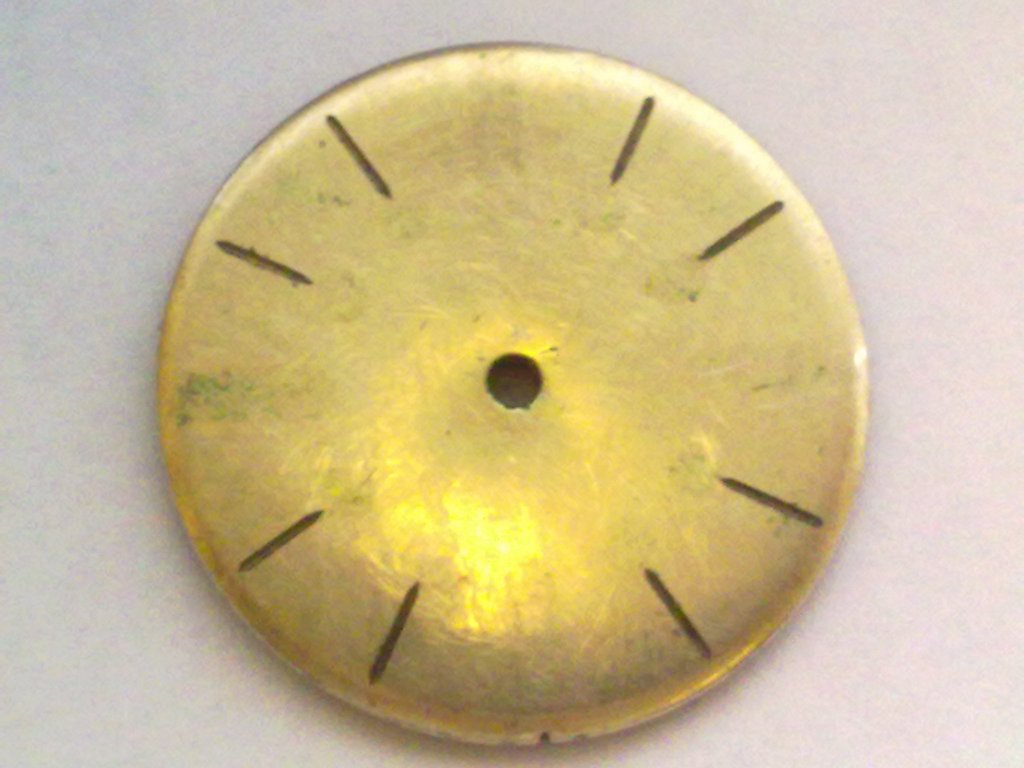 Про Ваш метод уже думал - пока останавливает только стоимость. Цифер я вчера почистил и отполировал (благо все надписи уже были утеряны, бояться было не чего). Думал чуть обновить чернение на существующих утопленных рисках и нанести пять дополнительных - 2 на 12 часах и по одной на 3, 6, 9 - похожее оформление я где-то уже видел) в принципе, голый циферблат располагает к не очень суровым экспериментам:D Как говориться - всё что можно было испортить, я уже испортил 10 лет назад:( |