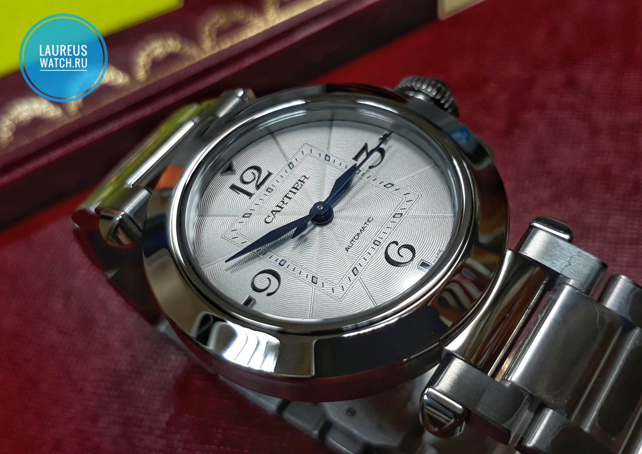 Пол: женские Год покупки: 2021 Новые часы, состояние: N (новые в пленках) http://forum.watch.ru/images/market-question.png Цена: 469 900 руб. (продажа) Коробка: есть Документы: есть Абсолютно новые женские PASHA DE CARTIER. Диаметр 35 мм, Сталь, Сапфировое стекло, Заводная головка и завинчивающийся защитный колпачок с синтетической шпинелью, WR 100 метров, Посеребренный циферблат с воронеными стрелками, Калибр с автоподзаводом Cartier 1847MC, Задняя крышка с сапфировым стеклом, Быстросъемный стальной браслет с фирменной корректировкой звеньев SmartLink, Дополнительный сменный кожаный темно-синий лаковый ремень из аллигатора и клипса к нему. Полный комплект. Официальная 8ми летняя гарантия (после регистрации часов на сайте). Москва. Вложение 3130894 Вложение 3130895 Вложение 3130896 |