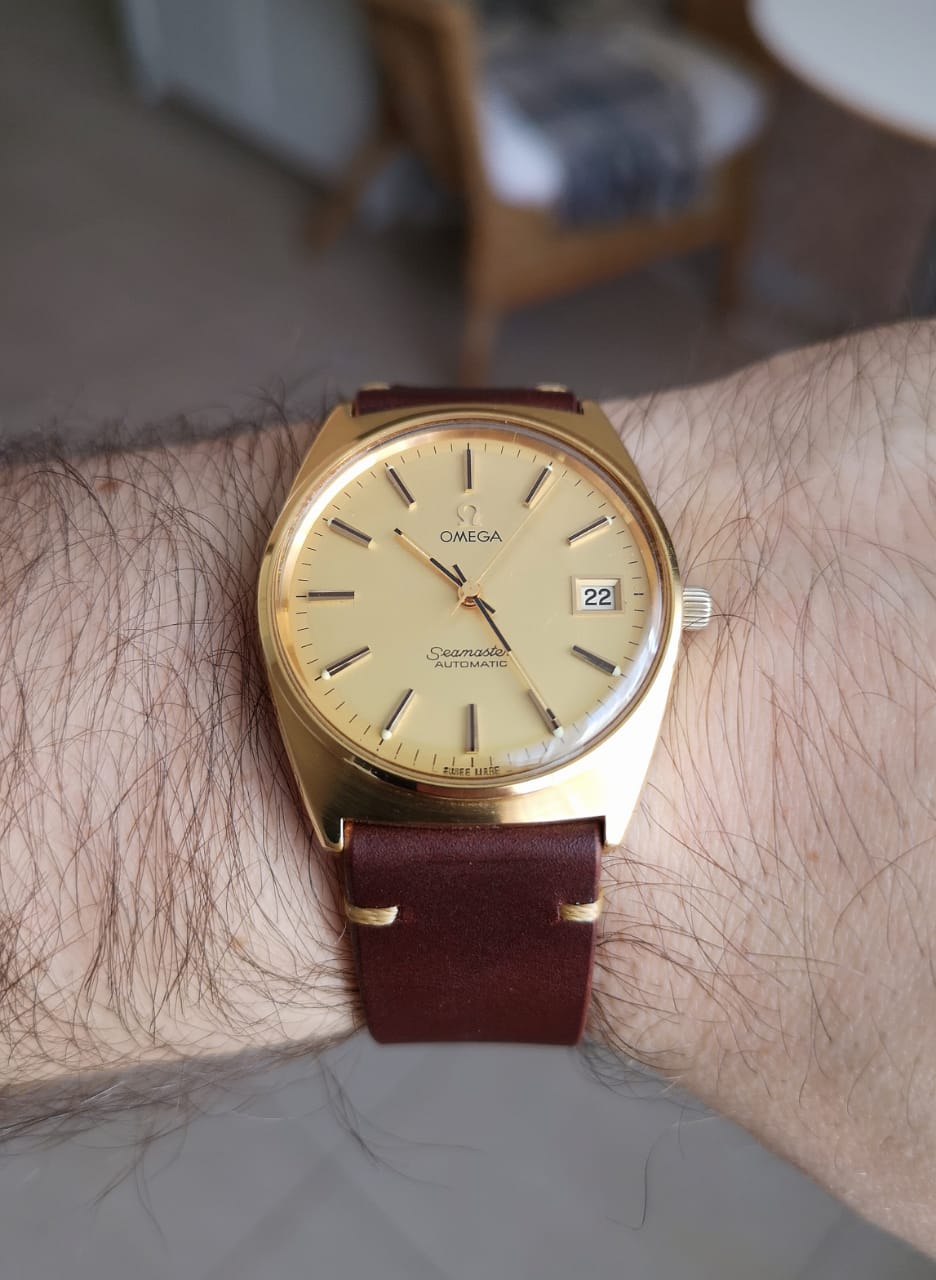 Пол: унисекс Год покупки: не указано БУ часы, состояние: B (нормальное) http://forum.watch.ru/images/market-question.png Полировка: нет Цена: 55 000 руб. (продажа) Коробка: нет Документы: нет Референс: ST 166.0204 Годы выпуска:1978-1980 гг. Механизм: механический, с автоподзаводом. Калибр:Omega 1010. Корпус-стальной, с позолотой. Стекло-плексигласс. Размер корпуса:34,6 мм. Расстояние между ушками-20 мм. Часы в хорошем состоянии, имеются естественные следы носки. Стекло в отличном состоянии. "В" поставил из-за отсутствия родного ремешка(родная бакля есть, но потертая). Часы на ходу, обслужены в октябре 2020 г. В комплекте 2 ремешка:обычный Stailer и сделанный на заказ из кожи Horween chromexcel.Несмотря на размер корпуса 35 мм, на среднем запястье сидят отлично. Коробка и документы отсутствуют. Вложение 3139361 Вложение 3139362 Вложение 3139363 Вложение 3139364 Вложение 3139365 |