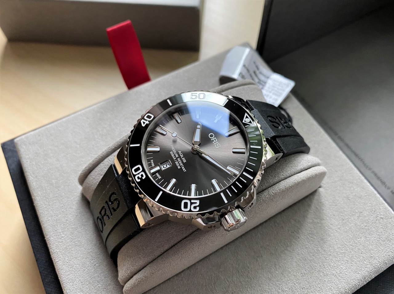 [ ДАЙВЕР ] / ORIS AQUIS / ТИТАНОВЫЙ КОРПУС! / СЕРЫЙ ЦИФЕРБЛАТ / КАУЧУК / 43.5ММ