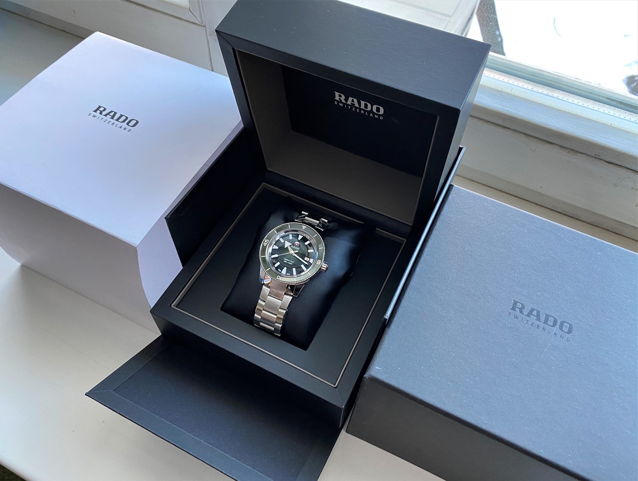 Пол: мужские Год покупки: 2021 Новые часы, состояние: N (новые в пленках) http://forum.watch.ru/images/market-question.png Цена: 134 500 руб. (продажа) Коробка: есть Документы: есть https://www.atelier-ct.ch/wp-content...kunde_rado.png https://helenkirchhofer.ch/media/cat...080_logo_4.jpg В продаже суперхит от Rado - дайвер Captain Cook (реф.номер R32105313). https://www.rado.com/int_ru/collecti...cook/R32105313 В одном из самых желанных, ярких исполнений: зеленый циферблат, браслет, универсальный диаметр 42мм, увеличенная водозащита по сравнению с базовой моделью - 300 метров. Стоимость у официальных дилеров ~ 183.400 Руб. Цена часов на форуме - 134.500 Руб. Часы находятся в Москве, оперативный показ в любое время. Бесплатная курьерская доставка в регионы. Все мои объявления, а так же отзывы обо мне можно найти в моем профиле. По всем вопросам и предложениям пишите в любое время - договоримся! Фото часов: Вложение 3177207Вложение 3177209Вложение 3177210Вложение 3177211Вложение 3177212 Вложение 3177213Вложение 3177214Вложение 3177215Вложение 3177216Вложение 3177217 |
