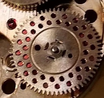 Все эти "дополнительные" камни вставлялись в такие детали механизма, где они могли выполнять только декоративную роль. Точнее, даже не декоративную, а маркетинговую. Выглядит это примерно так: Вложение 3179875 97, кстати, - не предел. Waltham и Orient выпускали часы со 100 камнями. Не помню, как у Waltham, но у Ориента камни были вставлены даже в ротор автоподзавода. Поэтому, никакой дополнительной ценности в этом нет. Можно самому наделать дырок в платине, колёсах и вставить еще больше камней :) |