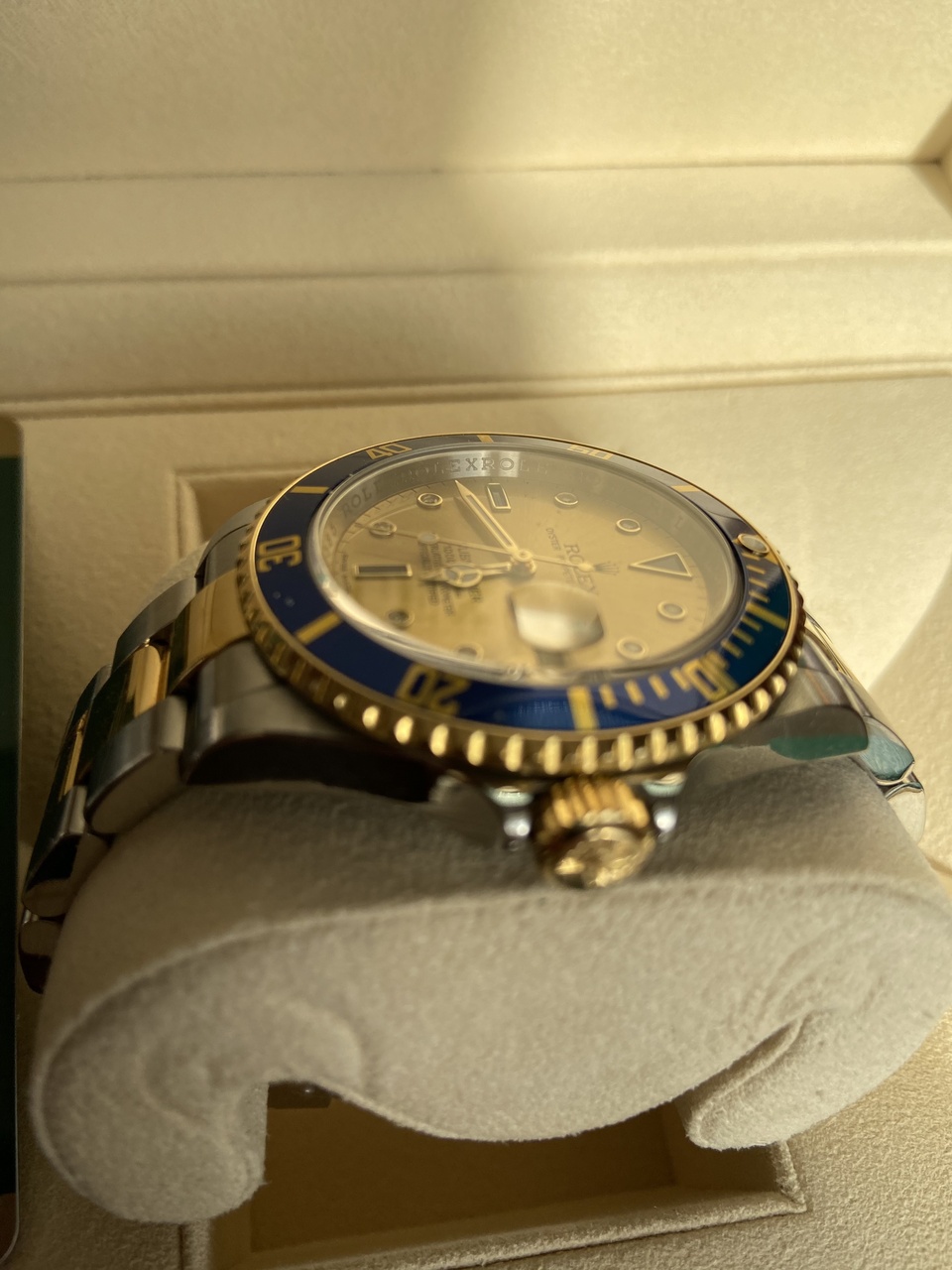 Пол: мужские Год покупки: 2008 БУ часы, состояние: AA (отличное) http://forum.watch.ru/images/market-question.png Полировка: нет Цена: 1 050 000 руб. (продажа) Коробка: есть Документы: есть Продаю достаточно редкий и замечательный Rolex Submariner Oyster Perpetual Date Diamond, с синим безелем ) Ref. 16613, диаметр 40 мм, купленные в Москве в Mercury (с полным набором документов и коробкой), сталь с золотом и бриллиантами которые совсем не мешают часам быть мужественными)) Продаю по причине не надобности . Перестал их вообще надевать. Калибр 3135, Водопроницаемость 30 атм., Stainless Steel and 18K Yellow Gold , Oyster Bracelet , Bezel: Original Rolex Bezel with Blue Insert Material: 18k Yellow Gold Dial Hand Style: Luminous, 18k Yellow Gold Dial: Original Rolex Dial Color: Champagne Numerical Style: Diamonds and Sapphire Продам в хорошие руки) Вложение 3208289 Вложение 3208290 Вложение 3208291 Вложение 3208292 Вложение 3208293 Вложение 3208294 Вложение 3208295 Вложение 3208302 Вложение 3208303 |