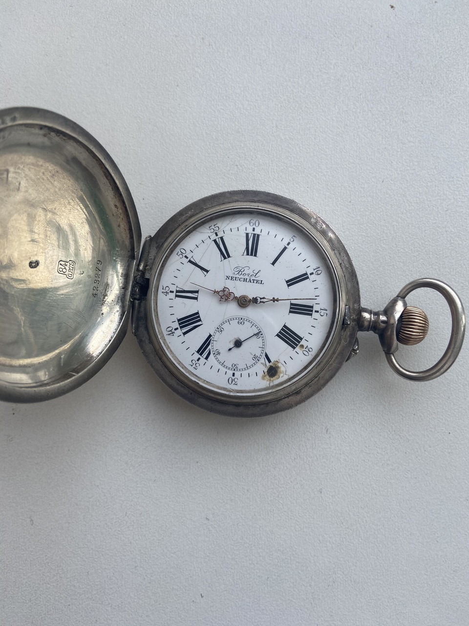 Часы на ходу.размер 60,5. Кнопка открытия крышки не работает. Серебро. Представляют ли какой то интерес или рядовые часы? Примерная стоимость ,страна и год выпуска? Спасибо.