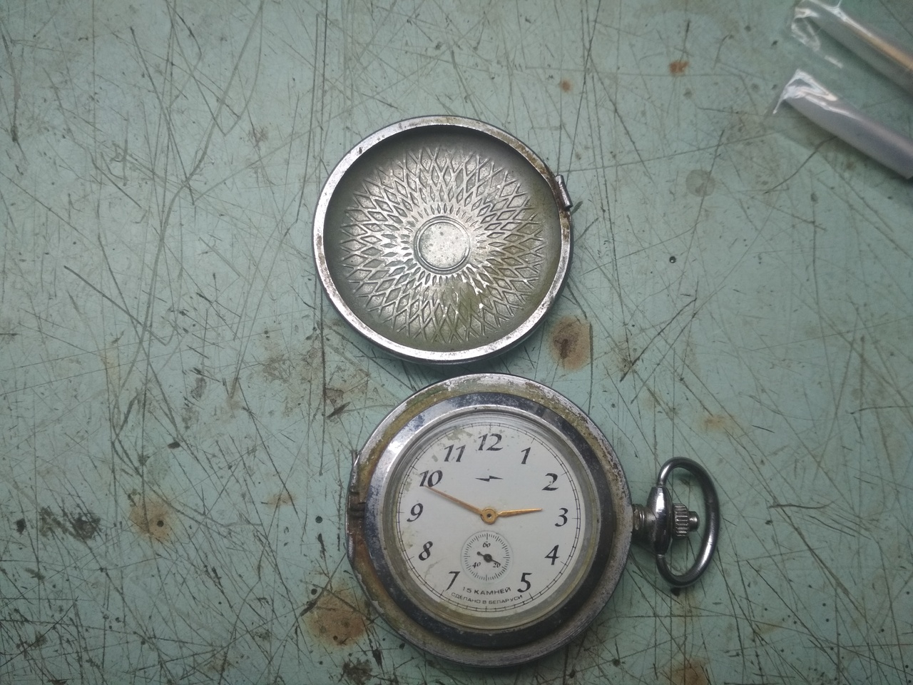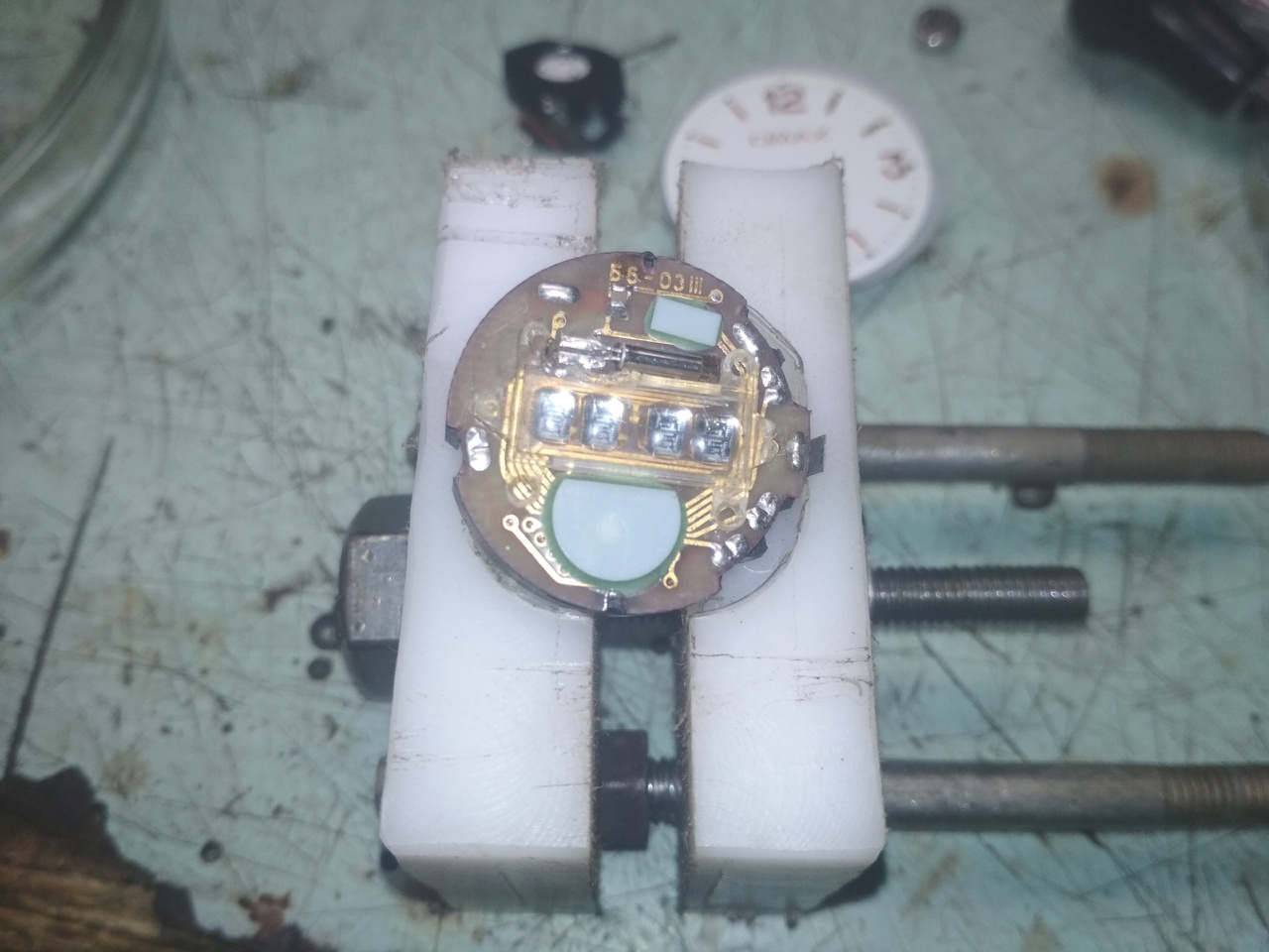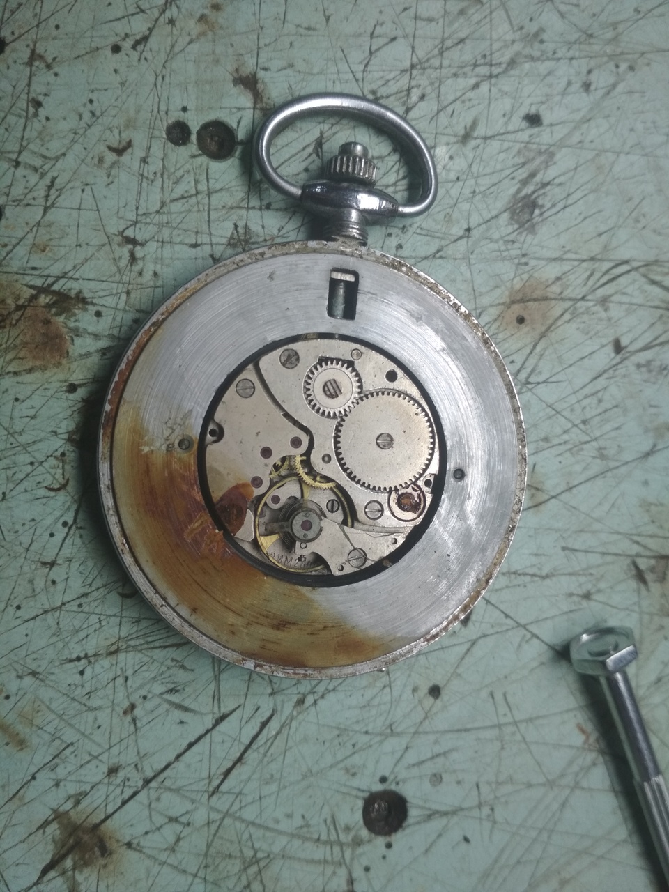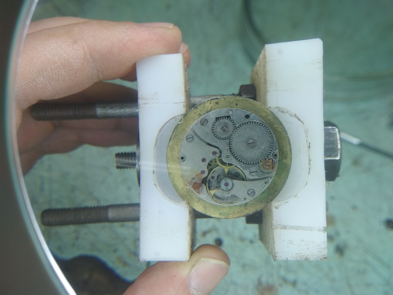 Вот и я с новостями. Следующим подопытным, после Электроники, стали карманные часы производства Беларуси, калибр 2602 ЗиМ. Часы куплены "после детишек". Уже на этапе разборки стало понятно, что в качестве первых часов я выбрал не самый простой вариант, ибо механизм, судя по всему, плавал. Но начало было положено и я решил до конца. Механизм был разобран и помыт в УЗ ванне раствором "Арсек" а после бензином Калоша. При разборке не обошлось без потерь: сгнила и отломилась голова винта крепления моста колесной системы, и сгнила пружина собачки. При сборке начал с баланса...На нем и закончил, т.к. амплитуды не было (2 качка при толчке - не в счет)... Пробовал править волосок, т.к. он лежал на колесе баланса. Когда начало казаться что все вроде получается - умудрился запутать (перехлестнуть) конец волоска. А в процессе распутывания - порвал.... Менять не на что, и я начал собирать механизм обратно. При сборке заводного механизма сгнившую пружину собачки заменил подаренной (знакомым часовщиком)..Но она оказалась малой и собачка не заработала должным образом. А при сборке ремонтуара 2 раза потерял пружину механизма переключения. 2й раз -не нашел... Итого: 1) корпус нуждается в ремонте - сломан штифт крепелния крышки (мелочи); 2) минус баланс, надо искать другой 3) пружина собачки 4) пружина ремонтуара Отложу до лучших времен. Сделал некоторые выводы для себя: - с плохими отвертками к часам подходить бесполезно - калить не получается, заточку не держат. - Пинцеты купил какие-то не ухватистые: волосок им взять можно конечно. А вот удержать - не реально, и не только волосок. Так улетела пружина ремонтуара, причем взятая за ОДИН конец.(( Пойдут только болты снимать-ставить. ИМХО - т.к. заказанные отвертки до сих пор идут - -решил попробовать сочинить отвертку на коленке: для этого купил цанговый зажим с деревянной ручкой, а на даче набрал иголок от швейной машинки. Материал игл всеже лучше "китайского пластилина". Худо бедно заточил и удалось собрать механизм.. - самодельная державка механизма - неочень. Но что поделаешь - делал в спешке и из того что было. . Для разборки следующих наручных пациентов пока нет "открывашки" - с Китая не стал заказывать - качество по отзывам - неочень.. надеюсь на собственный гаражный парк станков. Главное - взять где-то время..(( сейчас попробую вставить некоторое количество фото Вложение 3208279 Вложение 3208280 Вложение 3208281 Вложение 3208282 Вложение 3208283 Вложение 3208284 Вложение 3208285 ------- ДОБАВЛЕНО ЧЕРЕЗ 19 МИН -------- добавлю фото.. Вложение 3208296 Вложение 3208297 Вложение 3208298 Вложение 3208299 Вложение 3208300 Вложение 3208301 |
