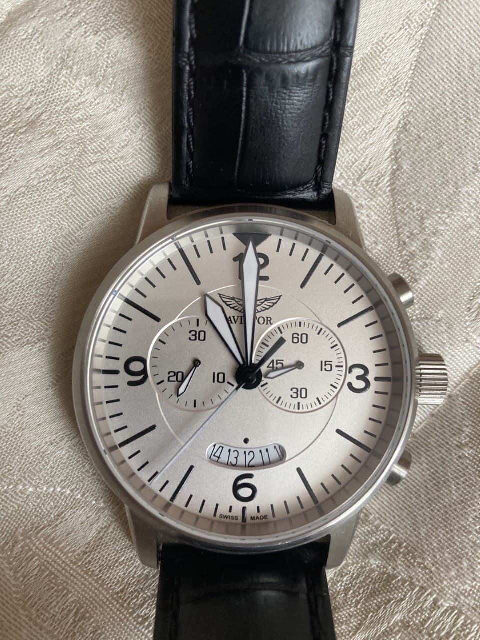 Пол: мужские Год покупки: 2014 БУ часы, состояние: A (хорошее) http://forum.watch.ru/images/market-question.png Полировка: нет Цена: 19 000 руб. (продажа) Коробка: есть Документы: есть Добрый день! Продам часы Aviator V.2.13.0.075.4 Airacobra Chrono с хронографом. Покупались в подарок близкому родственнику 23 октября 2014 года в Alltime, но он толком не успел их поносить. Сразу оговорюсь, что, будучи неопытным человеком, могу ошибиться как в указанном состоянии (ремешок имеет следы носки, но сами часы без единой царапины - не снималась даже пленка с задней крышки; батарейка села), так и с ценой - ориентировался на ценник в 41к в ритейле в данный момент. Буду благодарен за любой совет. Часы носились минимально, менее месяца, после чего были отданы мне и с тех пор доставались из коробки только чтобы сделать фотографии для объявления. Вложение 3207845 Вложение 3207846 Вложение 3207847 Вложение 3207848 Вложение 3207849 Вложение 3207850 Характеристики с просторов интернета Артикул/модель: Aviator V.2.13.0.075.4 Тип механизма: кварцевый Калибр: Ronda 5021.D Корпус: нержавеющая сталь Циферблат: серебристый Браслет: кожаный ремешок Водозащита: 100WR Подсветка: люминесцентные стрелки и метки (Superluminova) Стекло: сапфировое с антибликовым покрытием Габаритные размеры: D 45мм, толщина 12мм, вес 95г Личная встреча возможна в СПб. |