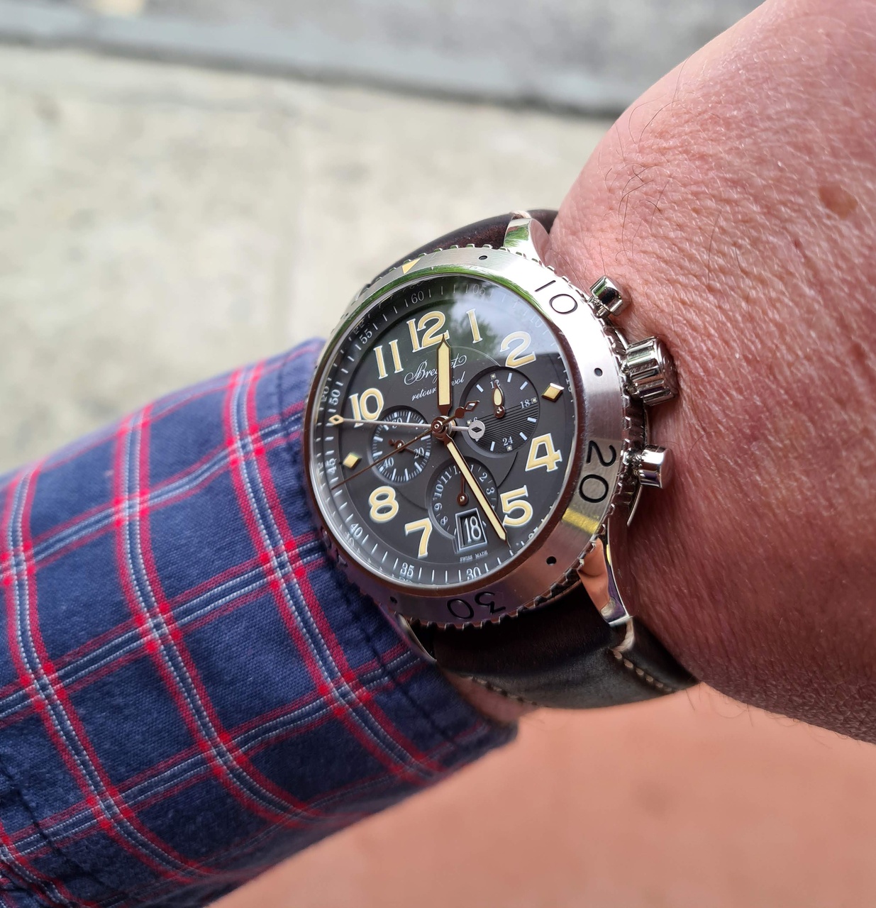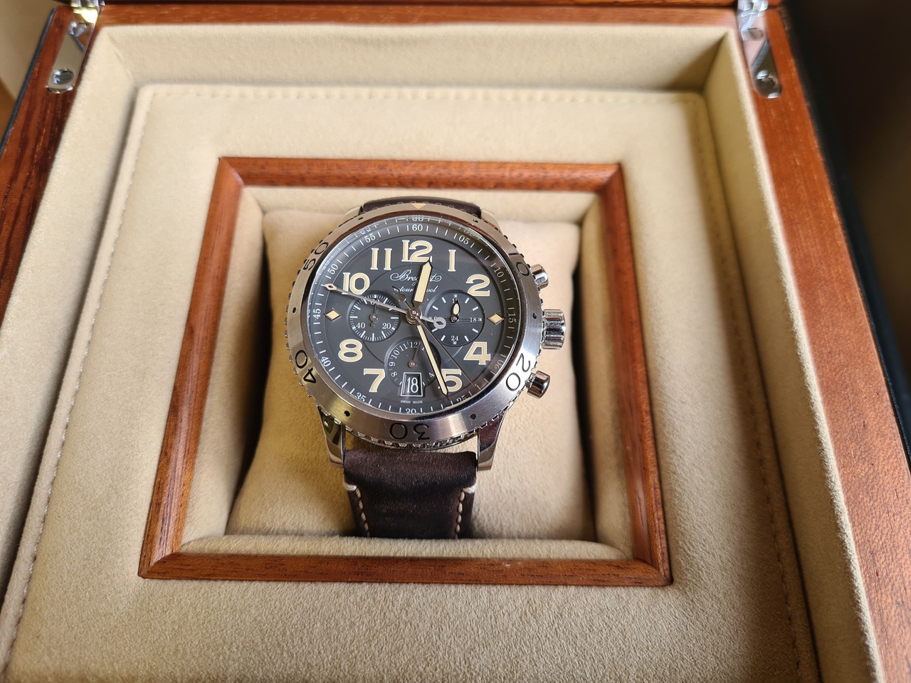 Пол: мужские Год покупки: 2019 БУ часы, состояние: AA (отличное) http://forum.watch.ru/images/market-question.png Полировка: не указано Цена: 650 000 руб. (продажа) Коробка: есть Документы: есть Роскошные #Breguet Корпус стальной, боковая поверхность с изысканным рифлением. Задняя крышка корпуса из сапфирового стекла. Диаметр 42 мм. Вращающийся безель. Закругленные ушки. Завинчивающаяся заводная коронка. Водонепроницаемость до 10 бар (100 метров). Циферблат грифельного цвета, подпись Breguet. Арабские цифры с люминесцентным покрытием. Индикатор день/ночь расположен в положении «на 3 часа». В положении «на 6 часов» находится 12-часовой счетчик и окошко даты. Малая секундная стрелка в положении «на 9 часов». Центральный минутный счетчик. Стрелки и индексы с люминесцентным покрытием. Механизм хронографа с автоподзаводом оснащен функцией «мгновенного возврата» (fly-back). Индивидуальный номер и подпись Breguet. Калибр 584Q/2, 13½ линий, 26 камней. Запас хода на 48 часов. Швейцарский прямолинейный спуск из кремния. Балансирная пружина из кремния. Частота колебаний 4 Гц. Отрегулирован в 6 положениях. Ремешок из телячьей кожи. Куплены в сентябре 2019. Великолепное состояние. РРЦ свыше 1.1 млн рублей. Наша цена - 650 тр. Торг, обмен и трейд-ин в личку. Вложение 3226323 Вложение 3226324 Вложение 3226325 Вложение 3226326 Вложение 3226327 Вложение 3226328 Вложение 3226329 |