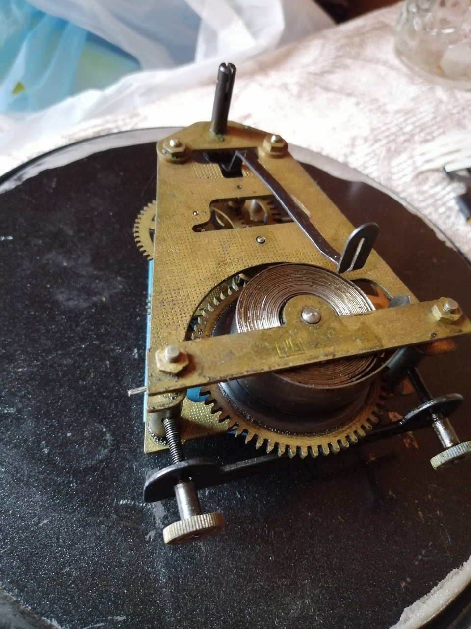 По случаю достались настенные ОЧЗ, но к сожалению с утратами. Маятник (точно от этих часов?) и вилка есть, а вот погон (подвес) отсутствует.