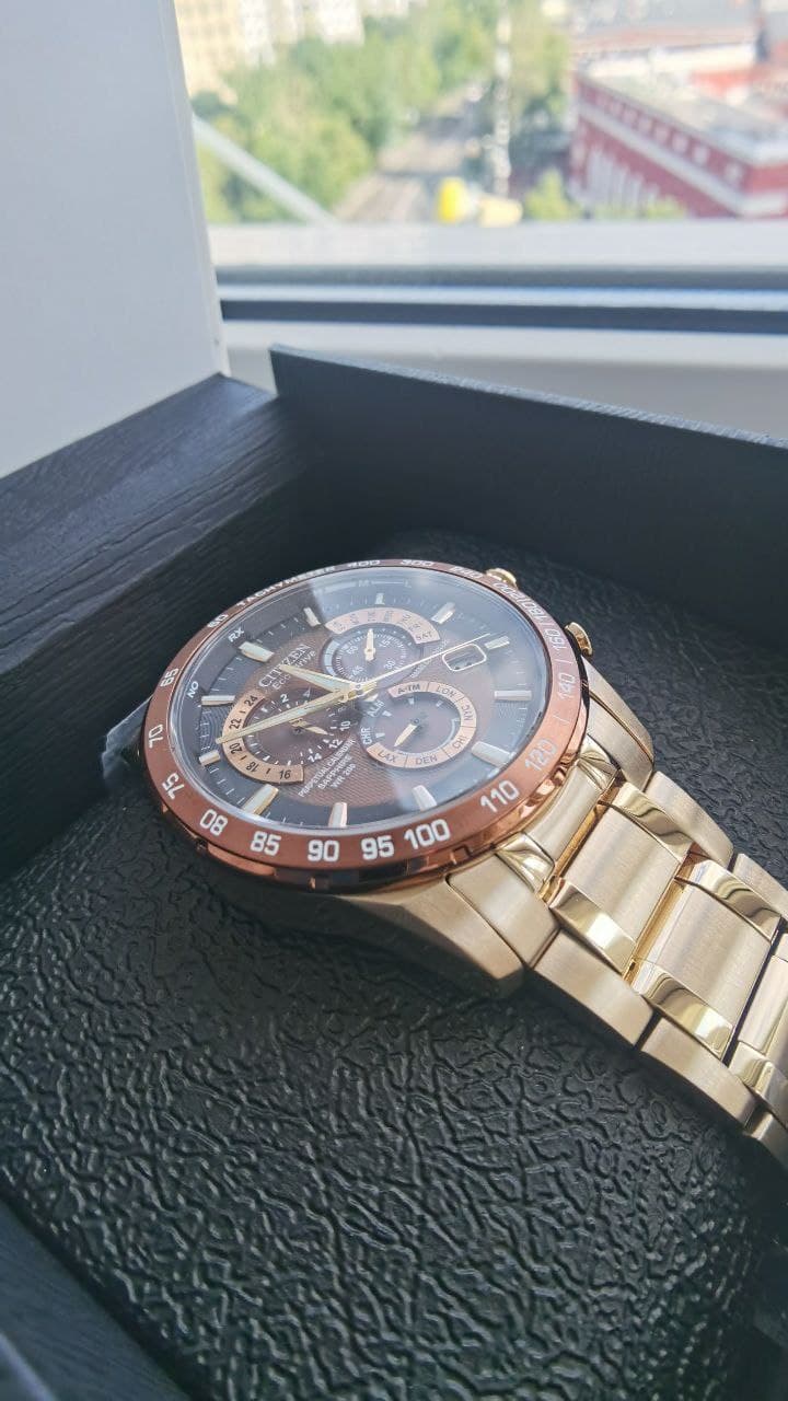 Пол: мужские Год покупки: 2021 Новые часы, состояние: N (новые в пленках) http://forum.watch.ru/images/market-question.png Цена: 35 000 руб. (продажа) Коробка: есть Документы: есть Продам новые часы, в пленках, с вечным календарем и сапфировым стеклом цвета розове золото Общие характеристики Тип: кварцевые Назначение: мужские Механизм: E650 Способ отображения времени: аналоговый (стрелки), формат 12/24 часа Цифры: отсутствуют Источник энергии: от солнечной батареи Конструкция Класс водонепроницаемости: WR200 (погружение под воду с аквалангом) Материал корпуса: нерж. сталь, покрытие позолота (полное) Материал браслета: нерж. сталь, покрытие позолота (полное) Стекло: сапфировое, с антибликовым покрытием Габариты: 42 мм Особенности Хронограф: есть Тахиметр: есть Будильник: есть Отображение даты: число, день недели Спорт-функции: секундомер Дополнительные функции: второй часовой пояс Подсветка: стрелок и меток Дополнительная информация: коррекция времени по радиосигналу, вечный календарь Вложение 3276140 Вложение 3276141 |