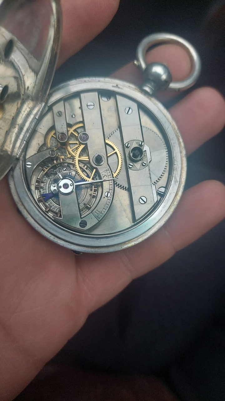 Аюб,здесь ни кто ни кому ни чего не должен.Вы не можете ни чего требовать,можете попросить,вежливо.Для начала покажите,соответствует ли номер корпуса,с номером механизма.Есть подозрение что это котлета.По часам-это механические часы в серебряном корпусе.Ключевка.Конец или середина 19 века.Они рабочие или нет? Покажите крупным планом цапфу баланса и механизм без циферблата,для более точной датировки.