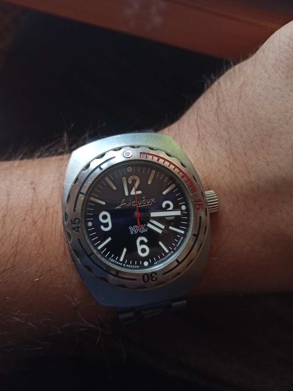 Восток Амфибия 1967 (Ограниченный выпуск) Вложений: 3 Вложение 3295678 Вложение 3295679 Добрый день! Недавно нашёл часы у своего дедушки Восток Амфибия 1967 Юбилейные , Ограниченный тираж. номер модели 0098 из 1967 единиц, что отмечено на задней крышке часов . Дедушка работал водолазом в Крыму до 2014 года, подарили примерно в году 2012-2013, говорил что брал их под воду на работы очень часто. Я ему пообещал, что выясню сколько они могут стоит в теории. Буду благодарен за ваши ответы касательно цены. Спасибо! |