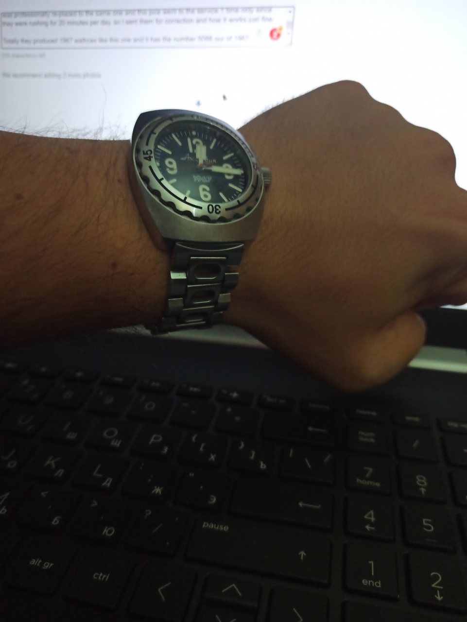 Вложение 3295679 Добрый день! Недавно нашёл часы у своего дедушки Восток Амфибия 1967 Юбилейные , Ограниченный тираж. номер модели 0098 из 1967 единиц, что отмечено на задней крышке часов . Дедушка работал водолазом в Крыму до 2014 года, подарили примерно в году 2012-2013, говорил что брал их под воду на работы очень часто. Я ему пообещал, что выясню сколько они могут стоит в теории. Буду благодарен за ваши ответы касательно цены. Спасибо! |