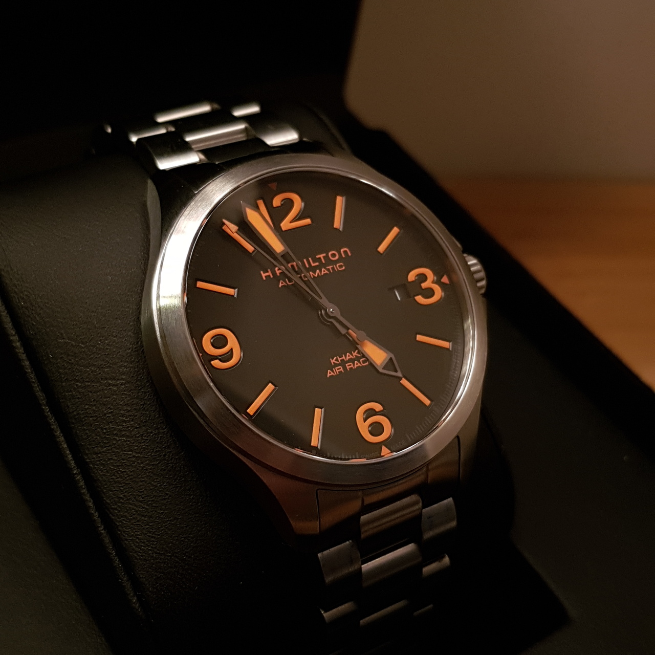 BLACK+ORANGE. Hamilton Khaki Aviation Air Race Auto