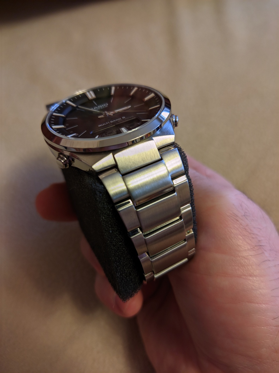 Пол: мужские Год покупки: 2021 Новые часы, состояние: N- (новые) http://forum.watch.ru/images/market-question.png Цена: 18 000 руб. (продажа) Коробка: есть Документы: есть Часы для техногиков, но в классическом дизайне! Радиосинхронизация, солнечная батарея, сапфировое стекло с внутренним антибликовым покрытием, водозашита 100м или 10Атм, полностью из нержавеющей стали, светодиодная подсветка, мировое время, секундомер, таймер, будильники, сигнал начала часа. Часы для внутреннего рынка Японии, куплены и привезены из Японии. В России данная модель сейчас не продается. Абсолютно новые! Пленку со стекла снял для проверки качества и отсутствия дефектов, повторно уже не клеется. Полный комплект: коробка, инструкция на русском, бирки. Отправка СДЭК по предоплате. Радиосинхронизация работает и на территории России, в Туле синхронизовались с немецкой вышкой в первую же ночь, лежа в коробке. Автоматическая синхронизация стрелок с цифровыми показаниями. Аккумулятор заряжается в автоматическом режиме от солнечной батареи, срок службы минимум 10 лет, есть режим экономии энергии в зависимости от освещенности, ночью останавливается секундная стрелка и гаснет дисплей. Сапфировое стекло с высокой твердостью защитит от царапин при эксплуатации. Антибликовое покрытие только с внутренней стороны, не поцарапается. Водозащита честные 100м или 10Атм, можно смело купаться, любым стилем, нырять без акваланга. Размеры - Высота 46.8 × Ширина 40.2 × Толщина 10.4 мм Вес - 128 Грамм Очень интересный и необычный дизайн часов! Множество острых граней, сочетание глянцевой и сатинированной полировки, браслет воспринимается единым целым с корпусом часов. Главная фишка - объемный циферблат с двумя уровнями, накладные метки как бы парят над стрелками! Отличный браслет из нержавеющей стали, полностью литой, без штампованных крайних линков. Смотрятся в реальности великолепно, явно дороже своей цены. Перфекционистов порадует чёткое попадание стрелок в метки, в том числе и секундной, что сейчас редкость! Рекомендованная розничная цена 37 400 Йен или 25 000руб.! По надежности можете не сомневаться, они неубиваемые, настоящее качество от Casio, без всякого маркетинга. Прекрасный подарок! Ссылка на официальный сайт: https://www.casio.com/jp/watches/cas....LCW-M510D-1A/ Реальные фотографии: Вложение 3344077Вложение 3344078Вложение 3344079Вложение 3344080Вложение 3344081Вложение 3344082Вложение 3344083Вложение 3344084Вложение 3344085 Вложение 3344086Вложение 3344087Вложение 3344088Вложение 3344089Вложение 3344090Вложение 3344091Вложение 3344092Вложение 3344093 Реальное видео. Начало длинное, чтобы показать попадание секунды в метки: [media]https://youtu.be/9XzPNIDB6rQ[/media] |