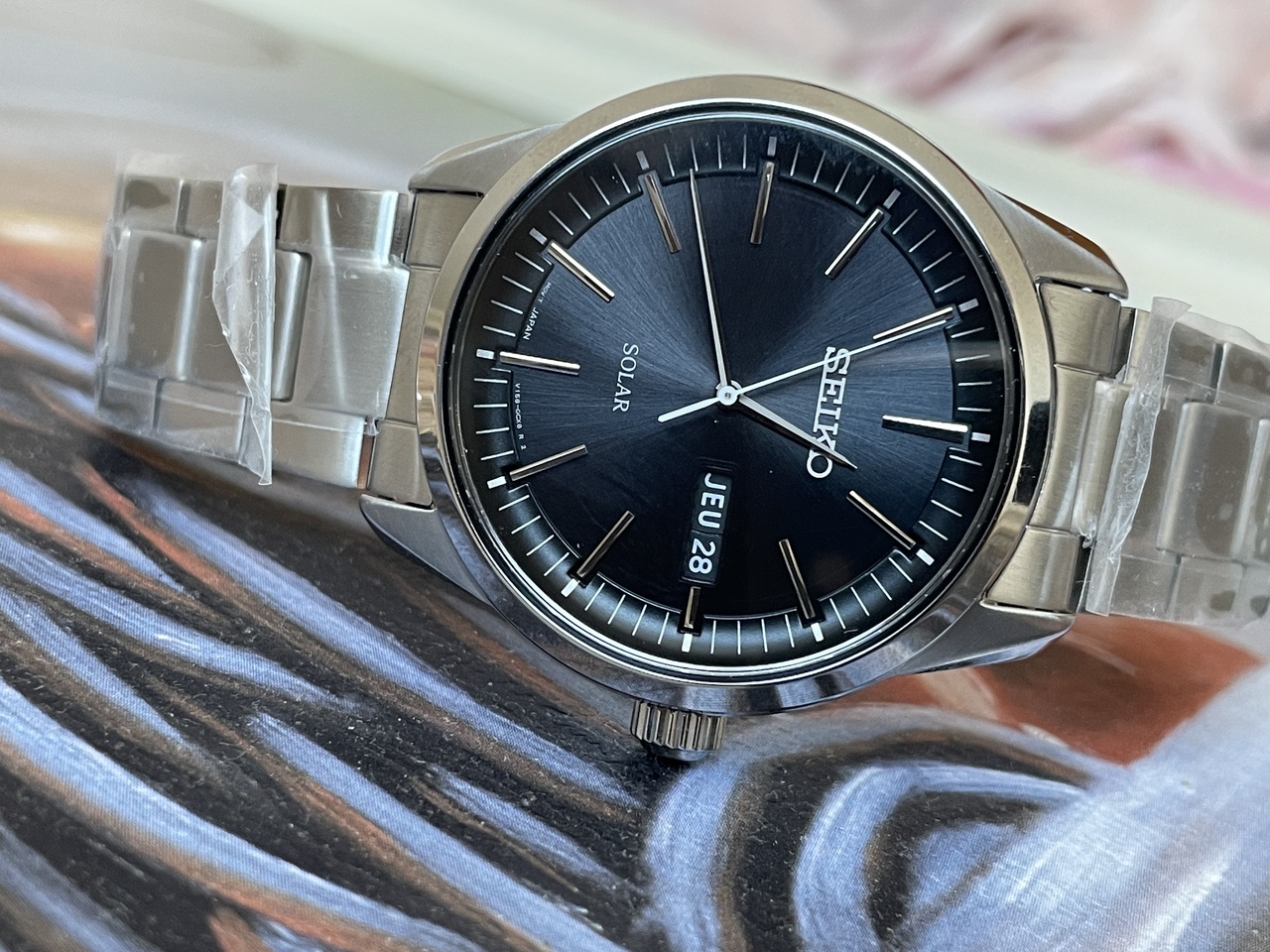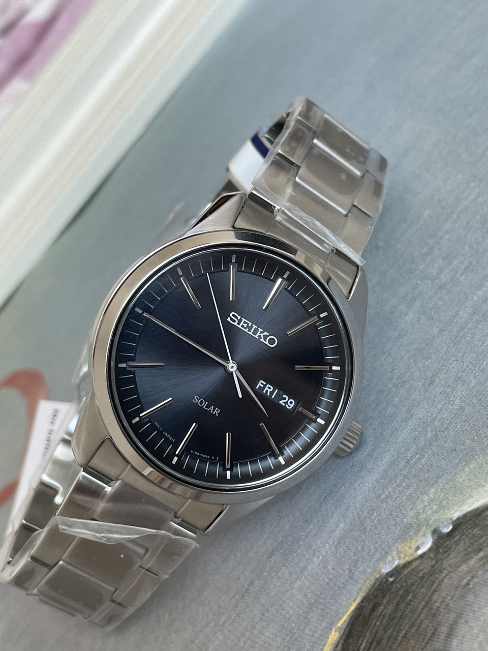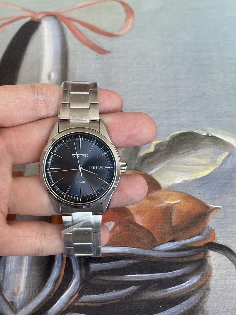 Пол: мужские Год покупки: не указано Новые часы, состояние: N (новые в пленках) http://forum.watch.ru/images/market-question.png Цена: 16 500 руб. (продажа) Коробка: есть Документы: есть Новые часы Seiko SNE527. В плёнках. Полный комплект. Готов отправить через СДЕК после полной предоплаты. Безумно красивый циферблат. Небольшой комфортный размер. Солнечная батарея (!). Сапфировое стекло Черный циферблат. Накладные металлические метки и накладной логотип Seiko Стальной браслет, 20мм. Сатинированный. Клипса с кнопками. Водозащита: 100м Диаметр: 40мм без учета заводной головки Высота: 47мм Толщина: 9.8мм Вес: 119г Смотрите другие мои предложения. |