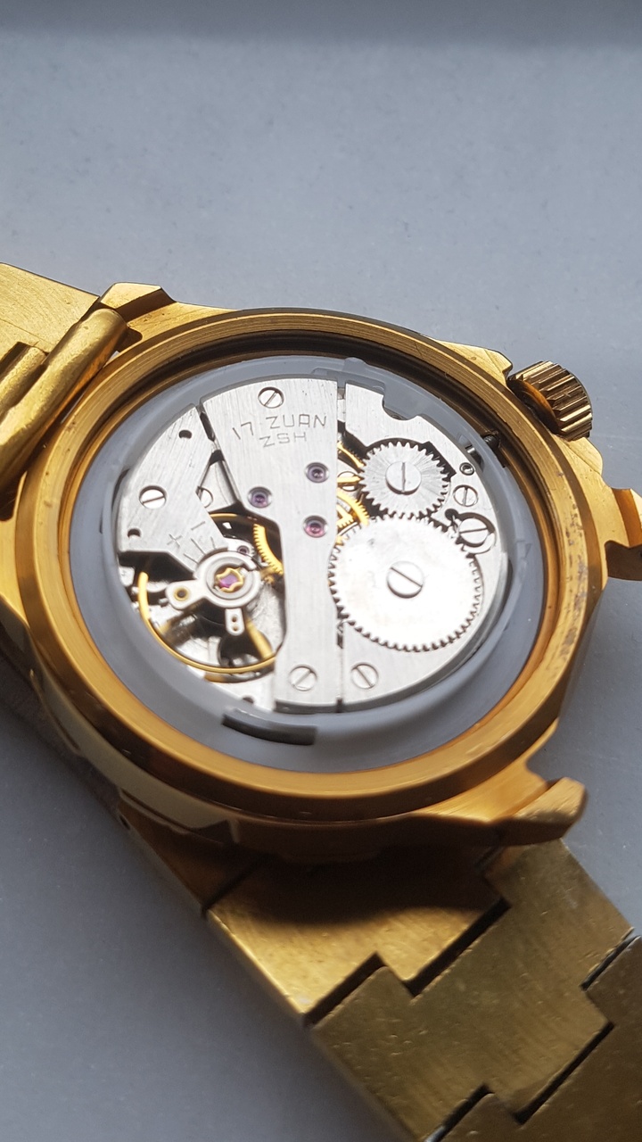 Были когда-то такие часы, циферблат такой же, но в другом корпусе. Внутри была Слава 2414. Только для удешевления из механизма выкинули 2 камня и получилось 19 камней.