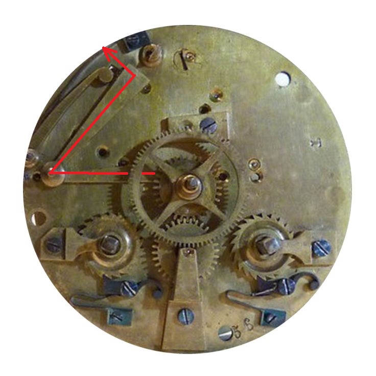 я бы поднял рычаг пуска боя в верхнее положение и зафиксировал его там, чтобы исключить влияние боя на ход (это же исключит влияние слабого минутника, если это так), и понаблюдал ход после этого Вложение 3354078 |