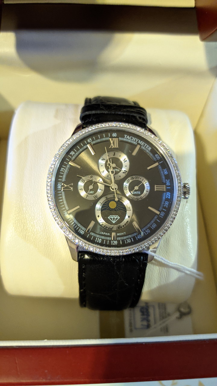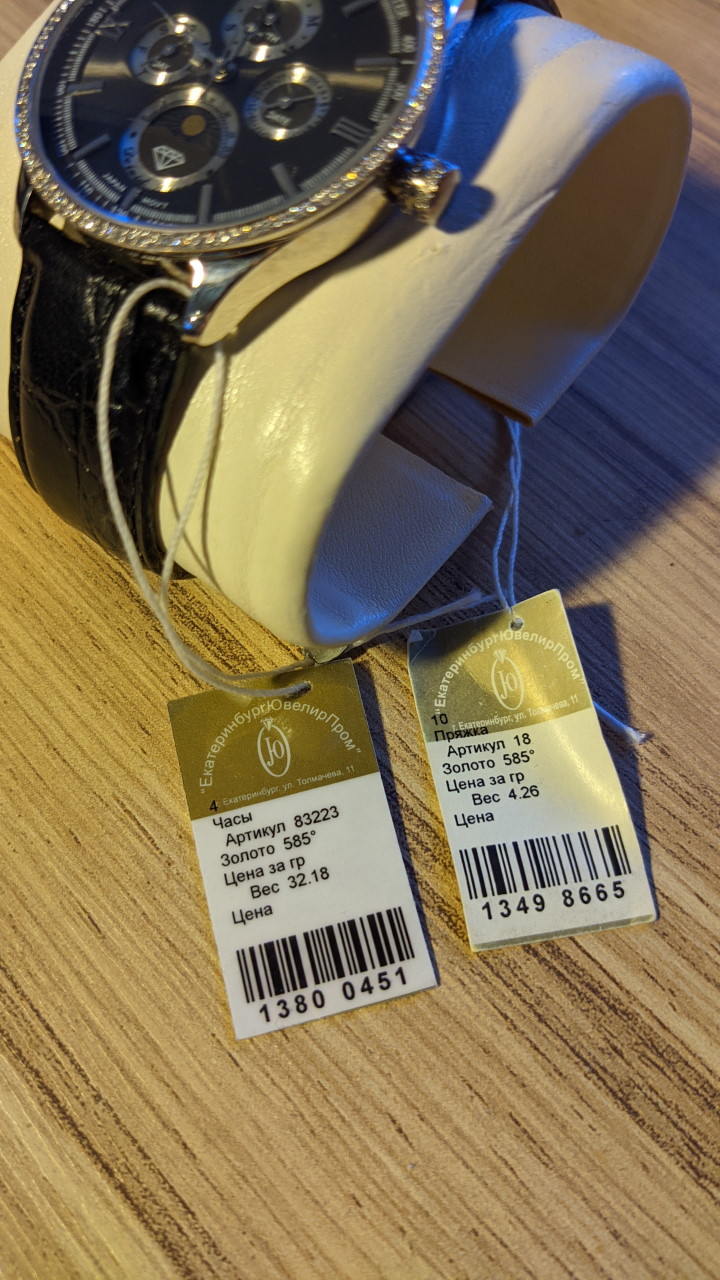 1. Omega Museum Collection Cosmic, лимитированные (номер 0716/1951), золото 750 пробы (18 карат), механика, механизм Frederic Piguet, ремешок - аллигатор, застежка - то же самое золото. В комплекте ещё какая-то специальная "палочка" для смены фазы луны или чего-то такого - она тоже золотая. Оригинальная коробка из дерева, паспорт. В носке на руке были 60-90 дней в сумме. Следы использования видны. Вложение 3382815 Вложение 3382816 Вложение 3382817 Вложение 3382818 Вложение 3382819 2. Российские часы Deivid Biron Yaniv, золото 585 пробы. Новые, ни разу не носились. Вес золота 32.18 гр (часы) и 4,26 гр (застежка ремешка). Есть ювелирные бирки. По всему безелю - бриллианты. Механизм - кварц, Miyota. Я так понимаю как часы они ценности не представляют, скорее просто как ювелирное изделие. Но как-то жалко новые часы в лом сдавать :) Вложение 3382820 Вложение 3382821 И следом вопрос - куда лучше такие часы сдавать в Екатеринбурге, если кто в курсе. |