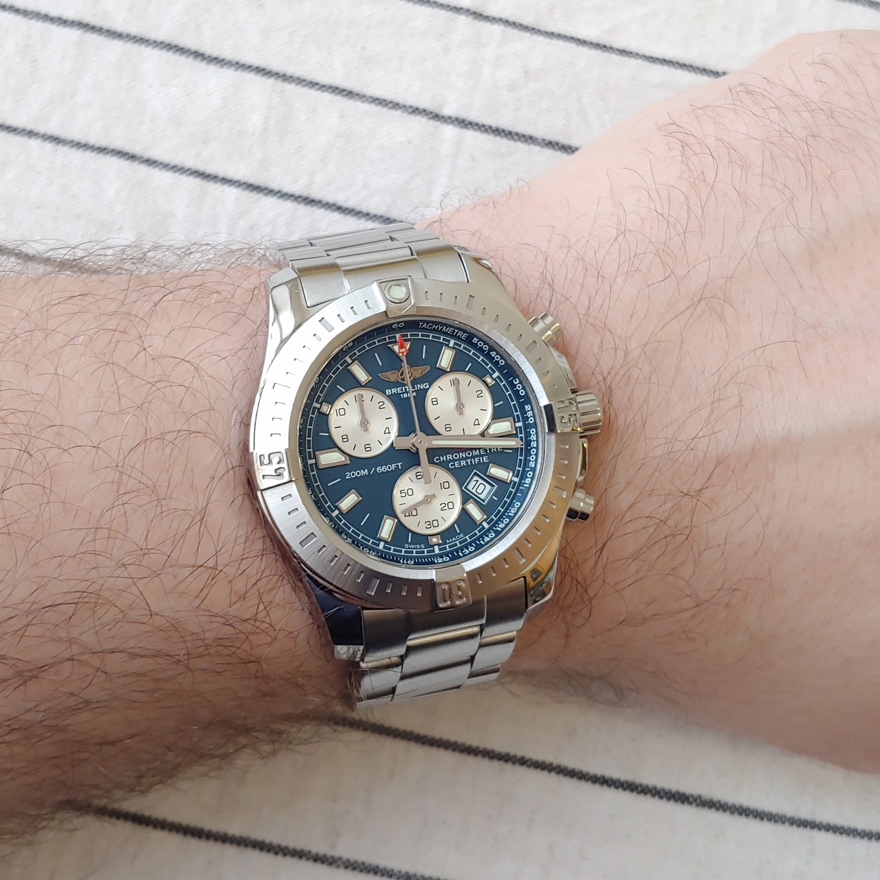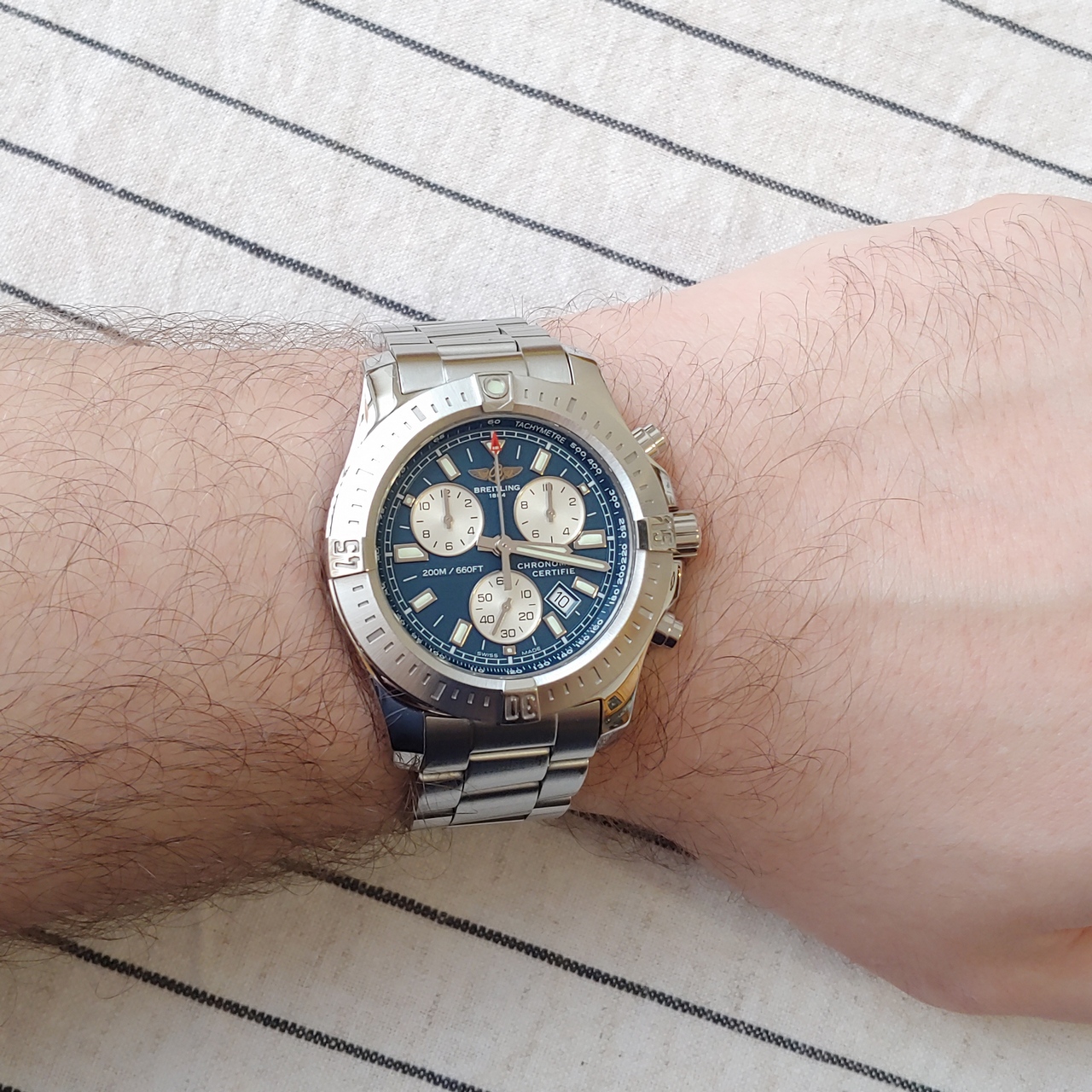 Пол: мужские Год покупки: 2019 БУ часы, состояние: A (хорошее) http://forum.watch.ru/images/market-question.png Полировка: нет Цена: 125 000 руб. (продажа) Коробка: нет Документы: есть Продам б/у Breitling Colt quartz chronograph 44mm (A7338811). Часы в особенном представлении не нуждаются, тема с ними едва ли не самая популярная в ветке Брайтлинга на форуме. Видеообзор - спасибо уважаемому MegaZur. Фотообзор - спасибо уважаемому Rassim. На данный момент это едва ли не единственный кварц от премиального бренда, если не брать некоторые Омеги, Картье и Гранд Сейко с Ситизенами, которые либо совсем в другом размере, либо стоят совсем других денег, либо имеют дизайн сильно на любителя. Паспортная точность +/- 15 секунд в год. Реальная точность хода часов за два с небольшим года эксплуатации по моим замерам - минус 5-7 секунд в год, т.е. на уровне лучших представителей высокоточного кварца. Крайне харизматичные и узнаваемые часы практически на все случаи жизни. Благодаря широкому стальному безелю, небольшой толщине и загибающимся вниз ушкам, смотрятся меньше заявленных 44 мм, скорее выглядят на 43. Хорошо сядут на руку от 17-17,5 см и практически до бесконечности. Приобретены в Тайм Авеню в Европейском в конце 2019 года. Часы мной носились с этого времени, за это время батарейка не менялась, часы не обслуживались, не полировались и т.д. Никаких проблем за время эксплуатации не выявилось. Но нужно отдавать себе отчет, что часы третий год в носке, до этого какое-то время лежали в бутике, так что не исключено, что батарейка может разрядиться когда-то скоро (а может и нет). Часы сняты с производства, на момент покупки стоили 250+ тыс рублей, на последний момент, когда их можно было увидеть на сайте Брайтлинга, РРЦ была в районе 290 тыс. рублей. Также напомню, что сейчас входной билет в Брайтлинг - это пластмассовые Endurance Pro на каучуке и на том же механизме с рекомендованной ценой около 390 тыс. рублей. По состоянию и комплектации: - есть все документы на часы, но коробки нет, одно звено браслета снято - в наличии; - стекло и антиблик в абсолютно идеальном состоянии без царапин и потертостей; - корпус в очень хорошем состоянии, за исключением потертости внизу боковой поверхности со стороны 9 часов, это следствие того, что часы иногда клались на стол в боковом положении, заводной головкой кверху, при носке это место соприкасается с запястьем и его не видно; - задняя крышка в нормальном состоянии, но со следами касания к браслету/застежке; - безель в хорошем состоянии, он матовый и на нем следов эксплуатации не видно, за исключением нескольких крохотных царапин примерно на 1-2 часа, которые видно, только если смотреть близко и приглядываться; - браслет в хорошем состоянии, есть естественные потертости и мелкие царапинки, но опять же он матовый и на практике ничего криминального на нем не видно; - застежка в посредственном состоянии, с заметными царапинами и потертостями на внешней стороне, по-хорошему требует полировки, на фотографиях видно. Цену поставил с учетом отсутствия коробки, состояния застежки и т.д. Часы в Москве, готов передать при личной встрече. Пересылкой не занимаюсь. Обмен не интересует. Вложение 3394684 Вложение 3394685 Вложение 3394686 Вложение 3394687 Вложение 3394688 Вложение 3394689 Вложение 3394690 Вложение 3394691 Вложение 3394692 Вложение 3394693 Вложение 3394694 Вложение 3394695 Вложение 3394696 |