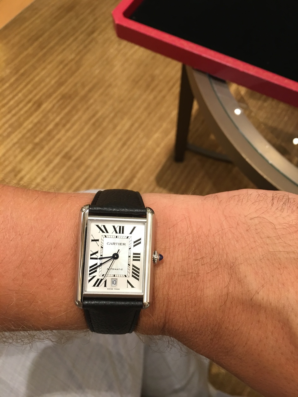 Немного освежу тему. Удалось померить Cartier Tank must. Сели или нет?