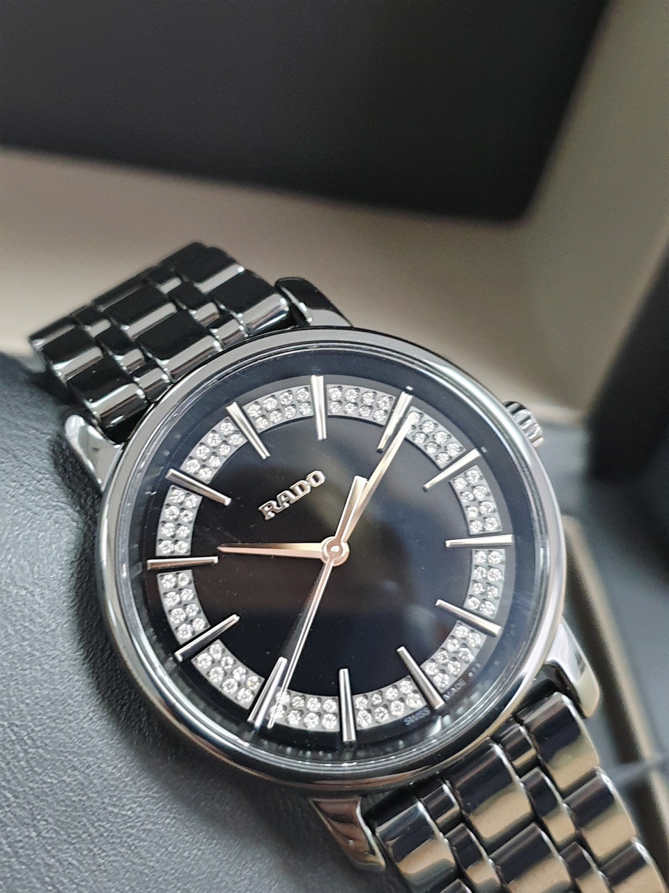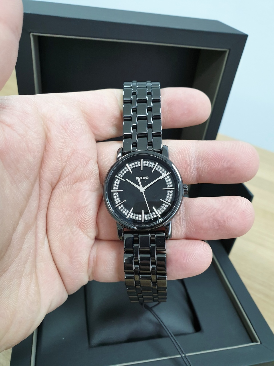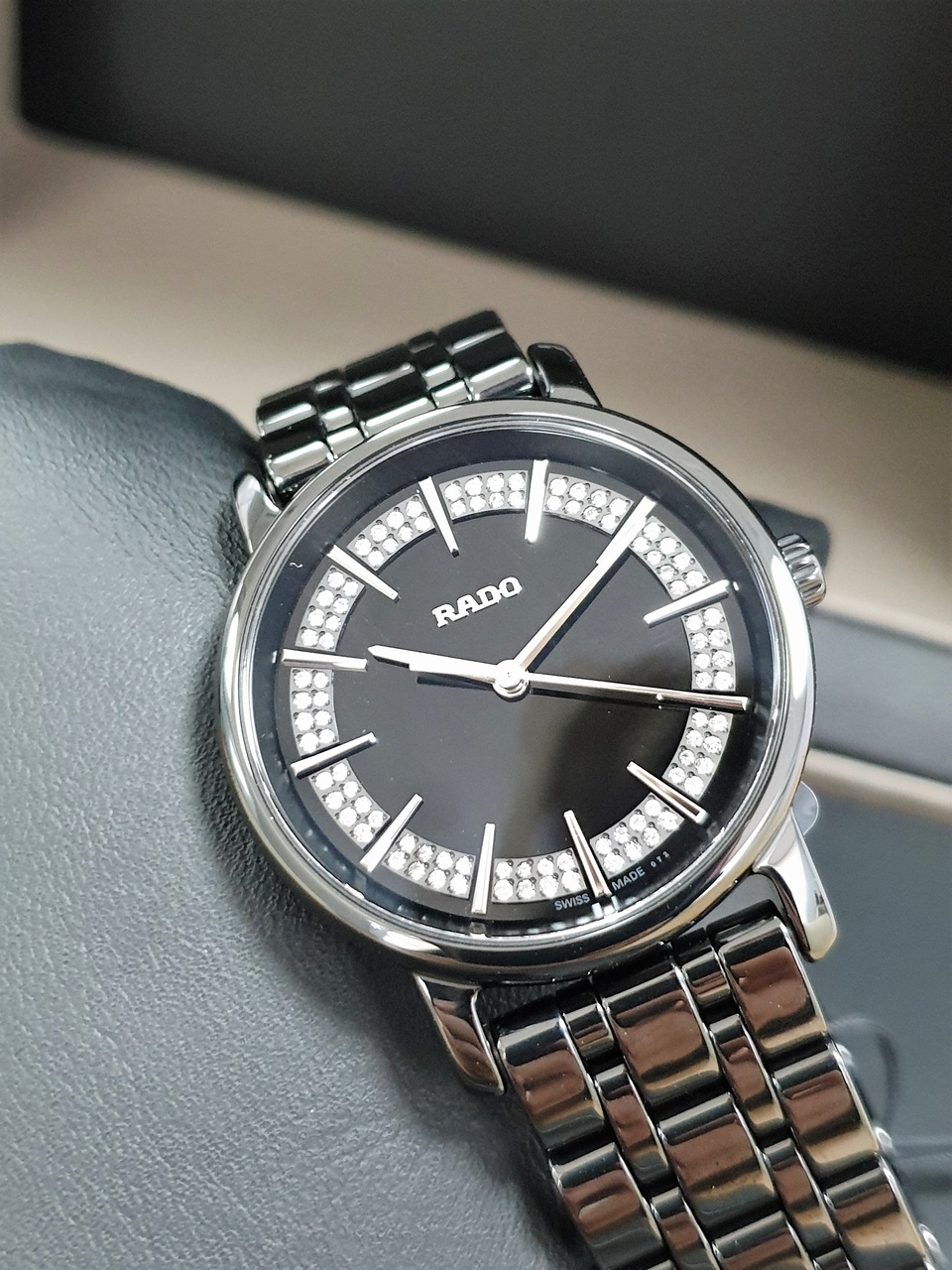 ЖЕНСКИЕ ШИКАРНЫЕ RADO DIAMASTER 96 БРИЛЛИАНТОВ! ЧЕРНАЯ ГЛЯНЦЕВАЯ КЕРАМИКА 33 мм КВАРЦ