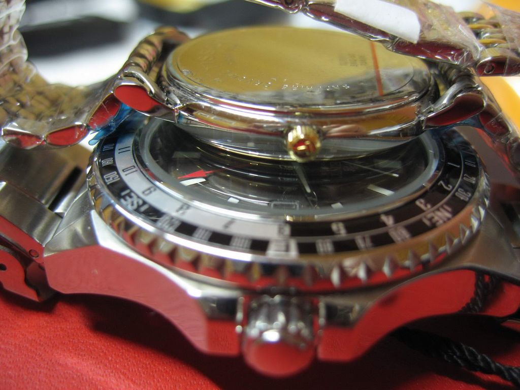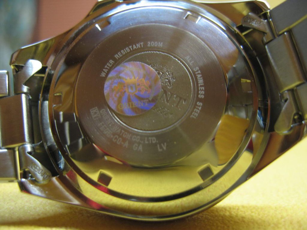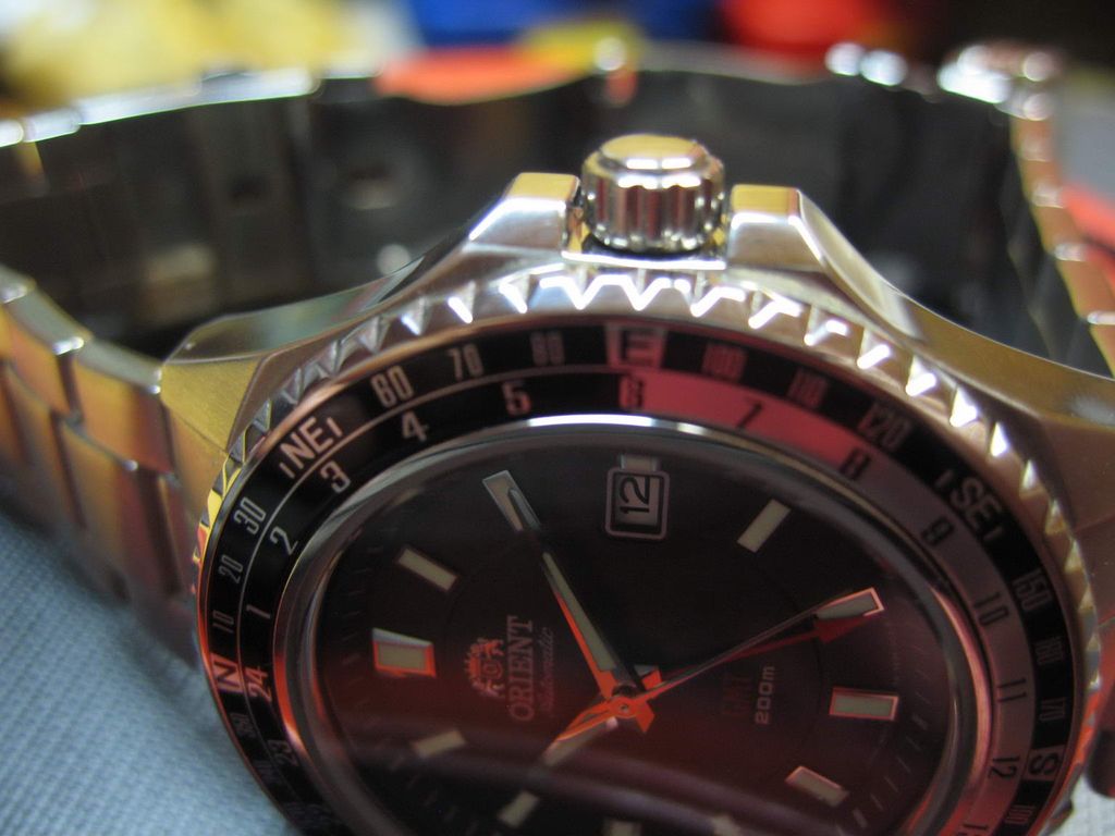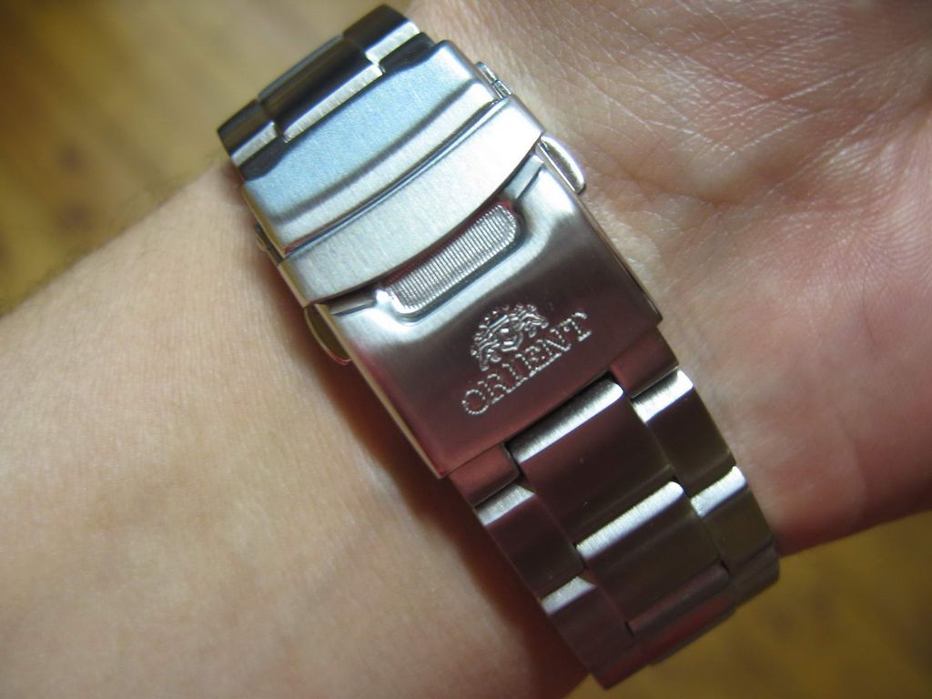 Информация взята: http://www.watch-hub.ru/blog/ORIENT/...SPORT_GMT.html Статья by (c)AlexSan Рассматриваются модели FFE06001B0 и FFE06001W0. В моем обзоре речь пойдет о модели с серым циферблатом FFE06001K0 Итак, основные функции этой модели - дайвинг и второе мировое время (GMT). Между делом они еще показывают и основное время. Стандартный трехстрелочник с усложнениями: четвертая стрелка показывает время другого часового пояса, а толстое стекло и специальный корпус помогает выдержать погружение с аквалангом. Вложение 101424Вложение 101425 Вложение 101426Вложение 101427 Описание модели Часы полностью изготовлены из нержавеющей стали 316L. Это немагнитная неаллергенная сталь, которая используется в медицинской и химической промышленности. Размер корпуса 46 мм по диагонали, или 49 мм вместе с головкой, длина корпуса от ушек до ушек - 50 мм. Толщина примерно 13 мм. Достаточно массивные. Корпус по бокам отполирован до зеркального блеска, местами сатинирован. Закручивающуюся головку окружают защитные приливы. Головка выдвигается на два щелчка. На первом меняется дата, на втором время. Сверху на корпусе имеется традиционный безель, только он не предназначен для индикации времени погружения, а показывает 24 часа GMT и стороны света. В отличии от стандартного безеля Мако и нового Мако, этот безель крутится во все стороны, а не против часовой стрелки. Что и понятно, так как функциональность его сильно отличается. И количество щелчков тоже отличается, если в Мако 60 щелчков, то здесь 72, т.е. каждое деление равно 7,5 градуса. Вложение 101428 Расшифровать надписи на безеле достаточно легко: Север N , Юг S, Восток E, Запад W, Северо-восток NE, северо-запад NW, юго-восток SE, юго-запад SW. Не смогли запомнить? Не беда, поверьте, на глубине 200 метров, вам будет все равно, с какой стороны света на вас нападает акула. Узнать, как пользоваться компасом, можно по этой ссылке http://www.clockshop.ru/readnews.php?nid=43 Вложение 101429 Стекло стоит утолщенное, закаленное минеральное. Как обычно у дайверов, из-за утолщенного стекла, вы не сможете быстро проверить водозащиту в приборе сухой проверки герметичности, так как стекло не сможет искривится при повышении в колбе давления. Придется нанимать водолаза для проверки на практике. Задняя винтовая крышка частично полирована, частично сатинирована, с шестью пазами. На крышке имеется гравировка, изображающая логотип компании и ее название, а также слово Automatic. По окружности имеются надписи - WATER RESISTANT 200M ALL STAINLESS STEEL ORIENT WATCH CO LTD KY FE06-C0-A CA Вложение 101430 Браслет шириной примерно 21 мм. Звенья литые, 13 штук, из них 6 регулировочных. Браслет полностью сатинирован, за исключением полированных торцов звеньев. Замок раскладывающийся, на двух кнопках, с предохранительной скобой. Т.е. просто так часы с руки не спадут. Складывающиеся скобы отполированы, и на них изнутри выдавлена надпись STAINLESS STEEL. Замок имеет три микрорегулировочных отверстия для точной подгонки. На замке выдавлен стандартный логотип и надпись ORIENT канатиком. Вложение 101431Вложение 101432 Циферблат простой, без особых изысков, с широкими индексами. На индексах, часовой и минутной стрелках, нанесена светомасса. На секундной стрелке и на стрелке GMT светомассы нет. Стрелка GMT красная, с острым наконечником. По окружности циферблата имеются мелкие риски. На цифре 3 имеется окно с числом месяца. Надписи: лого, ORIENT, Automatic, GMT, 200 m. Внизу циферблата микрошрифт: Japan movt, TM, FE06 000 Вл
