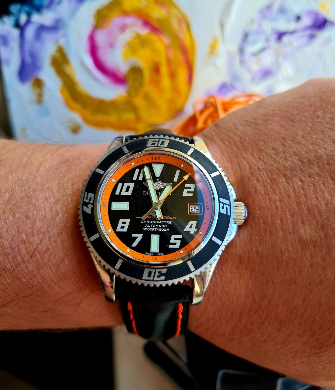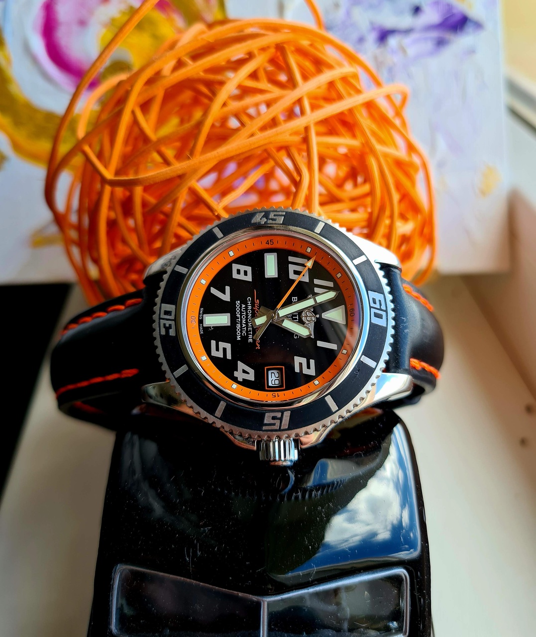 Пол: мужские Год покупки: не указано БУ часы, состояние: AA (отличное) http://forum.watch.ru/images/market-question.png Полировка: не указано Цена: 159 900 руб. (продажа) Коробка: есть Документы: есть Редкая лимитка в семействе #superocean от компании #Breitling . Вообще Брайтлинг не часто балует нас лимитированными изданиями, и потому вдвойне приятно заполучить такие часы. Выпуск ограничен 2000 штук. Водозащиты 1500 метров, сапфир конечно. Модель с очень ярким люмом и отменной читаемостью и невероятно красивым цветовым решением с оранжевыми, солнечными штрихами. Новый ремень от топ мастера довершает яркий ансамбль. Полный комплект и хорошее состояние. И при этом всем цена, как за штатную модель Вложение 3494579 Вложение 3494580 Вложение 3494581 Вложение 3494582 Вложение 3494583 Вложение 3494584 Вложение 3494585 |