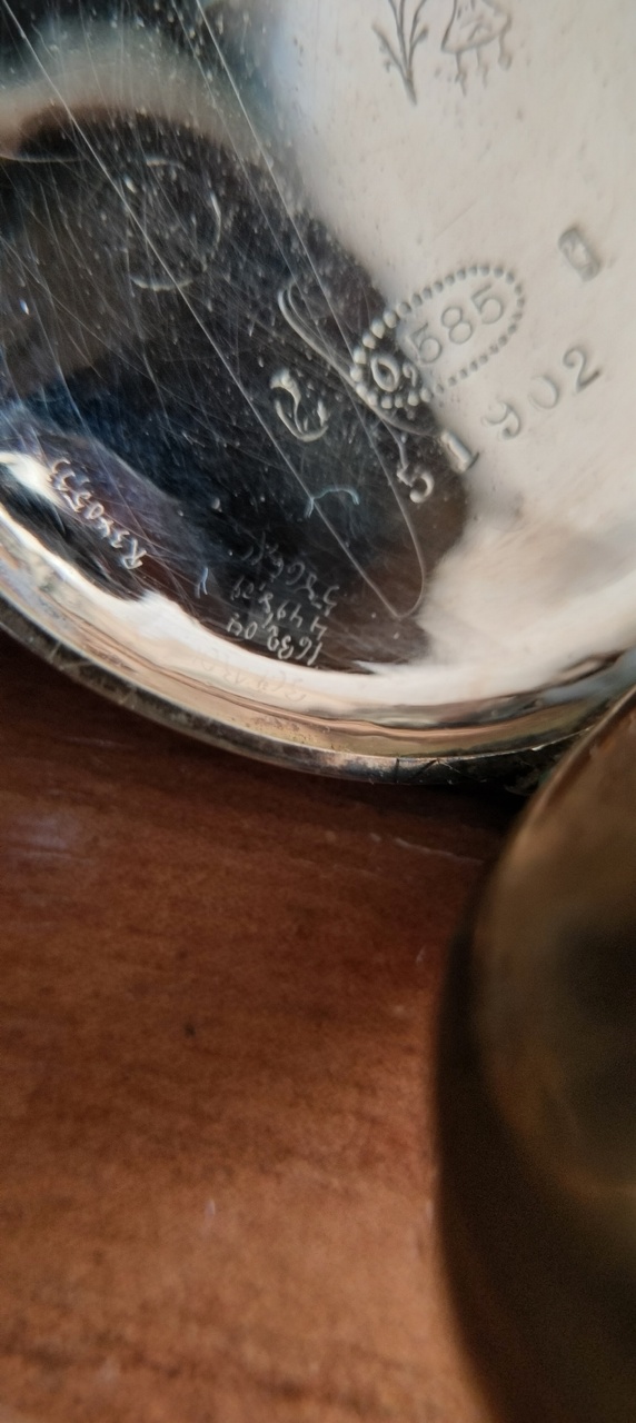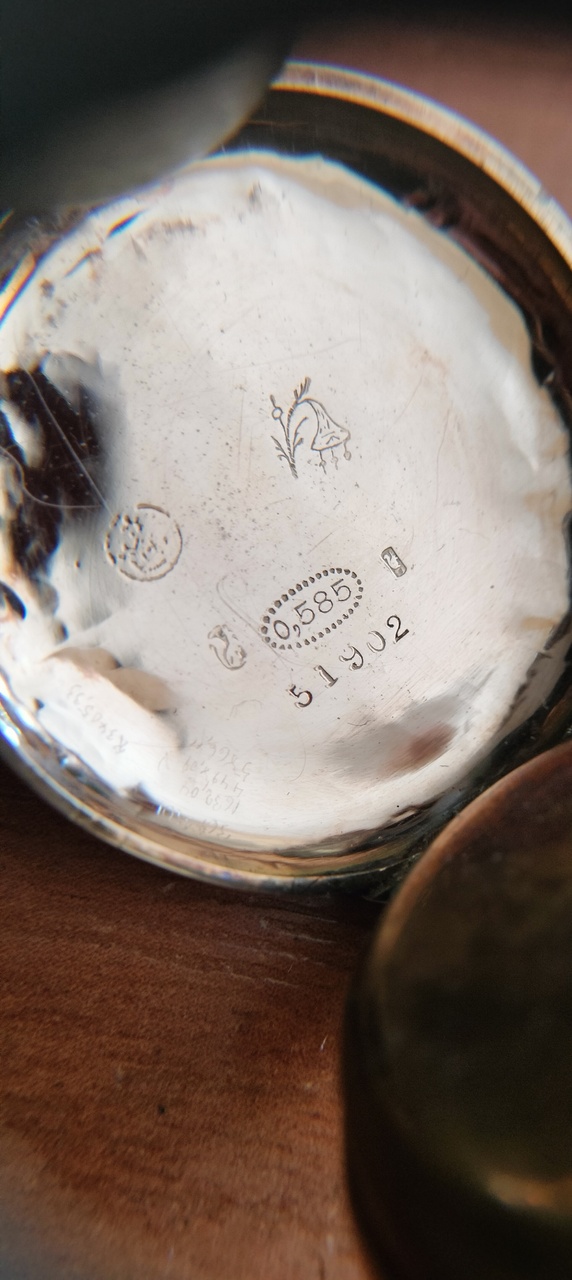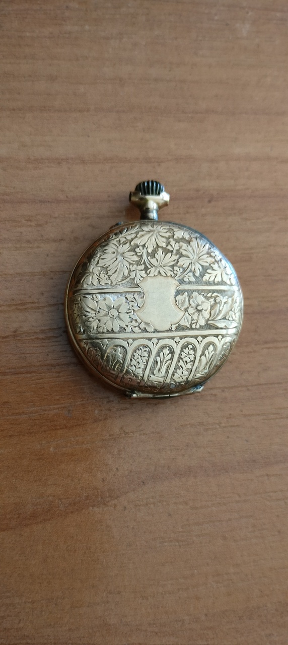 давайте фото механизма. а так, на скорую - дамский корсетник (кстати, диаметр часов укажите), в золоте. середина 19 - начало 20 века (очень примерно). пыльник (крышка средняя) - металл. дамские часы продаются плохо, от слова совсем. только по лому. будет фото механизма, знатоки ответят поточнее. |