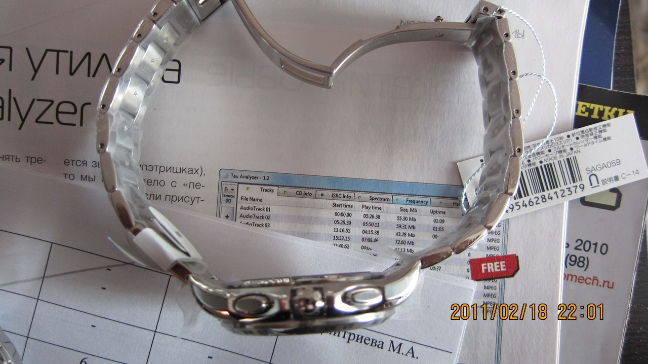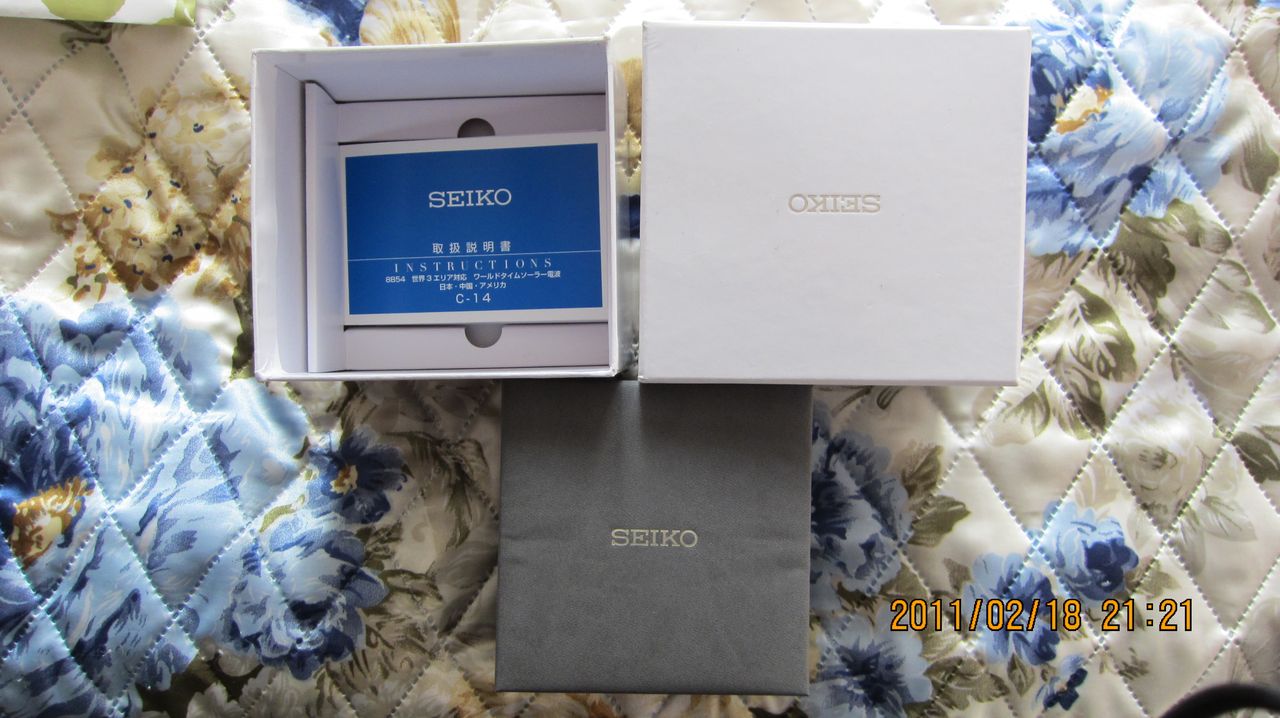 http://www.seiko-watch.co.jp/p_searc...php?no=SAGA059 заказывал знакомому. Из условий выбора: 30 тр, Сейко или Швисс. Просмотрев каталоги из Японии, выбрал по внешнему виду и функциям. Списал я с нашими тремя мушкетерами из Японии, в этот раз самым щедрым был Chino. Так что в течение нескольких месяцев я заказывал поочередно у каждого. Посылка дошла быстро ЕМС - 8 заплатил, 9 отправили 18 пришла. Рекорд. Вот коробка с содержимым: Вложение 102710Вложение 102711 Внутри белая коробка с часами, внутри белой еще одна: Вложение 102712Вложение 102713 Внутри белой коробки еще обнаружился мануал, международная гарантия, чек с 2 копиями Маленький традиционный японский подарок: Вложение 102707Вложение 102708Вложение 102709 Очень понравилась внутренняя коробка: Вложение 102714Вложение 102715Вложение 102716 А вот и часы в ней: Вложение 102717Вложение 102718 День недели: Вложение 102719 Второй циферблат - второй часовой пояс: Вложение 102720 Мультисити: Вложение 102721 Зг + 2 пушера Вложение 102722 Боковинка корпуса: полировка: Вложение 102723 Задняя крышка: Вложение 102724 Браслет: боковинка - полированная, звенья сатинирование + полировка Вложение 102725Вложение 102726Вложение 102727 Обычная застежка - бабочка: Вложение 102728 На руке: Вложение 102729 Все фото - часы в пленках, которыми залепили все. Впечатления, если отбросить дизайн (не любитель я кварца и всяких усложнений) -сделаны очень добротно и качественно: 1) чередование полировки и сатинирования на корпусе и браслете, переходы между плоскостями тщательно сделаны 2) красивый цифер 3) приятная ЗГ 4) легкие, тонкие - я люблю помощнее Из минусов: 1) относительно слабый люм 2) застежка не дайверская, но это уже придирки. Надежная застежка. 3) не механика ))) Хотя функция засыпания - прикольная вещь, достал часы - стоят, прошло 2 секунды истрелки начали крутится,выставив японское время, затем сами выставили дату. Прикольно. Механизм: 8B54 Соляр - засыпание, защита от перезаряда, радиосинхронизация (Япония, Китай, США), ± 15 секунд в месяц, мировое время (24 города), индикация времени в 2-х поясах Закручивающаяся ЗГ, сталь, сапфир с антибликом 48 × 45mm на 11.3mm Браслет - 20 мм Единственное не понял,чтотакое: Retrograde mechanism Day ceremony Needle position automatic correction |