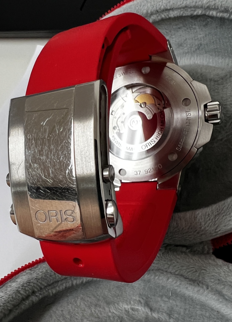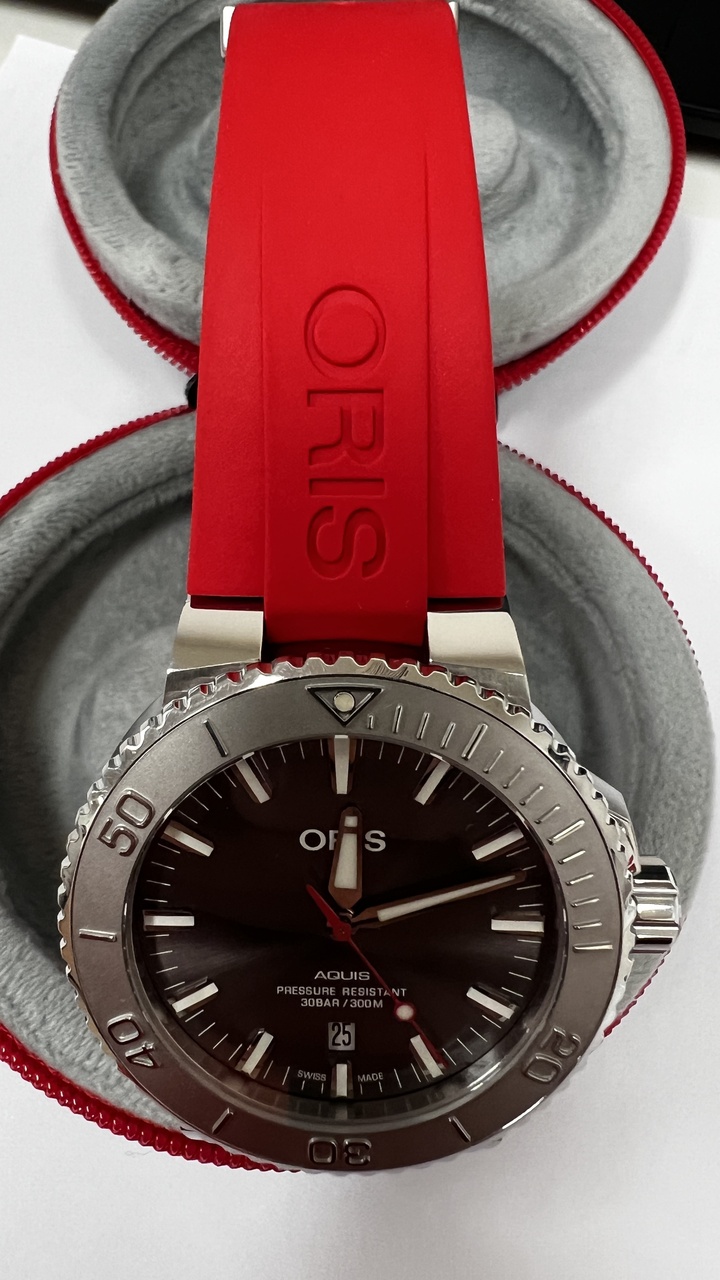 ДАЙВЕР / ORIS AQUIS DATE RELIEF / РЕЛЬЕФНЫЙ БЕЗЕЛЬ / СЕРЫЙ ЦИФЕРБЛАТ / КРАСНЫЙ КАУЧУК / 43.5ММ