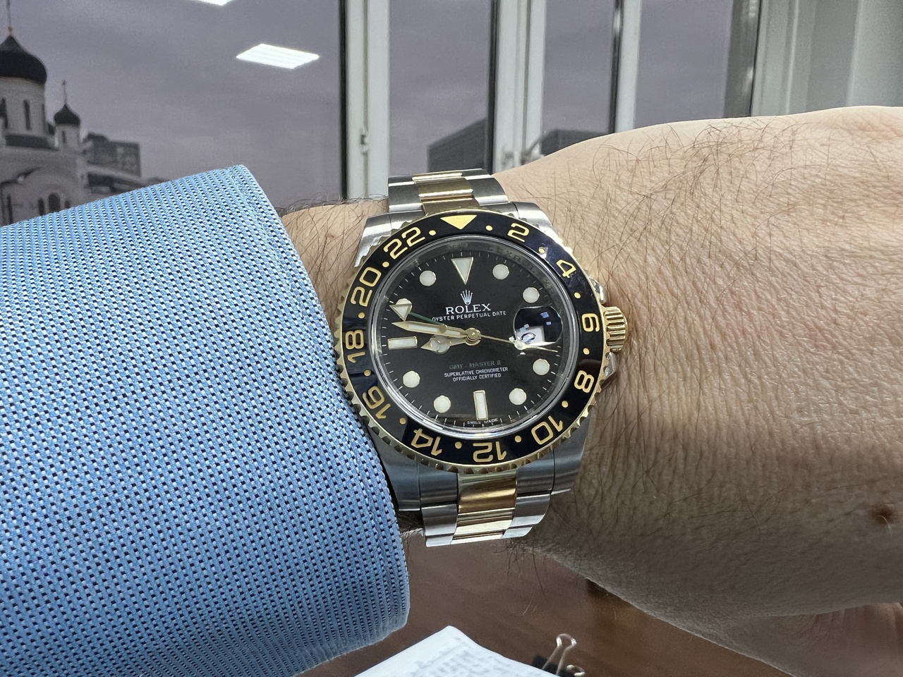 Пол: мужские Год покупки: не указано БУ часы, состояние: AA (отличное) http://forum.watch.ru/images/market-question.png Полировка: нет Цена: 950 000 руб. (продажа) Коробка: есть Документы: нетВложение 3550336 В продаже часы - биколорный Rolex GMT-Master II, 40 мм, желтое золото и сталь, ref. 116713LN, в отличном состоянии. |