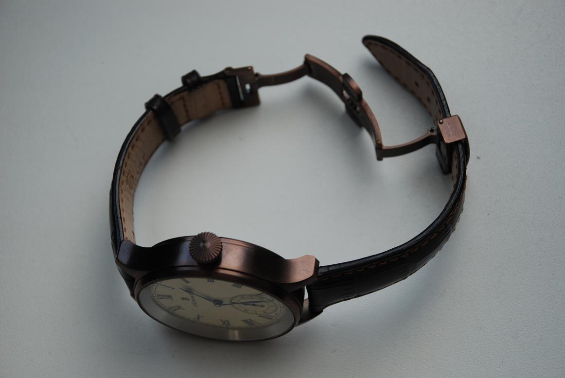 Вот и пришло мое время похвастаться обновкой. Долго выбирал себе часы. Создал даже две темы, посвященные этому. Участвовал в теме по пилотным часам от Гюнтера.... Изначально планировал взять часы с большой датой и вторым часовым поясом. Но так как рука достаточно крупная, то найти что-то в размере 44-47 мм и доступное по цене не шмог. Долго изучал сайт Штейнхарта и засматривался на эти часы. И очень огорчился, когда они были перенесены в архив. Написал письмо Гюнтеру на заказ в 44-х миллиметровом корпусе в блестящей стали. А в конце письма приписал, а не осталось ли у вас, мил человек, коффейных корпусов в размере 47. Гюнтер ответил в течение часа. Сказал, что есть еще один корпус, может собрать, если надо. Естественно надо! Плюс к этому заказал еще один ремень (видно на фото), которой с барского плеча был презентован мне (думаю поставить на Авиатор Волмаксовский) и заказал все это в деревянной коробке. Отправил заказ. И тишина.... Несколько раз напоминал о себе. Пришел счет на 395 евро. Оплатил PayPal. Гюнтер подтвердил получение денег и сказал, что отправит в течение 7-и дней, т.к. надо собрать часы. Если брать хронологию, то получилось так. 13.01 - оплачено. 21.01 - отправлено. 03.02 - часы на почте в Уфе. Отдельно про Почту.... Так как был в это время в командировке, то забрать смог только 11 февраля. При этом приехал на свою почту, они говорят на почтампте центральном. приехал туда - говорят отправили вам в отделение. Сходил в машину, вышел в инет с бука, нашел номер отправки, показал, проверили, оказалось - все таки на почтампте. Забрал. Теперь о часах. Часы офигительного (простите за слово) кофейного цвета. Словами не передать красоту, выглядит действительно винтажно. Римские цифры и отдельный секундный циферблат. При этом цвет циферблата очень красивый - чуть темнее молочного. Стрелки очеь красивы и вороненые - все вкупе смотрится очень красиво и органично. Привлекает внимание на раз. Так как по роду деятельности постоянно бываю в судах, то судьи засматриваются. С одним даже разговорились, показал, рассказал, дал адрес форума и Гюнтера. Так что может еще один адепт появится. :) Сзади стоит стекло, сквозь которое прекрасно видно механизм, украшенный простыми женевскими волнами. Ручной завое. Внутри ETA 6489 на 17 камнях. Точность за две недели порядка +3с/сутки. Посмотрим, что будет дальше. Очень красивый и удобный ремешок с застежкой бабочкой. На фото был ремешок у Гюнтера с обычной застежкой, этот не менее удобен. При этом сама застежка тоже кофейного цвета, очень просто застегивается, нигде не мешает. Сразу одел, застегнул, все отлично. Даже переставлять и настраивать не пришлось. Вот вроде бы и все. В завершение могу сказать, что часы отличные и очень удобные. Глядя на них действительно не всегда видишь время з красотой! Рекомендую всем и серьезно подумываю и Гюнтероском дайвере. Буду рад ответить на вопросы. Ну и по традиции фото. Не кидайтесь камнями, китовый объектив на Никоне 80-м что-то глючить начал. Понял, что надо макрик все таки прикупить. Спасибо всем, кто советовал и отговаривал от Steinhart! Вложение 104639 Вложение 104640 Вложение 104641 Вложение 104642 Вложение 104643 Вложение 104644 Вложение 104645 Вложение 104646 Вложение 104647 Вложение 104648 |