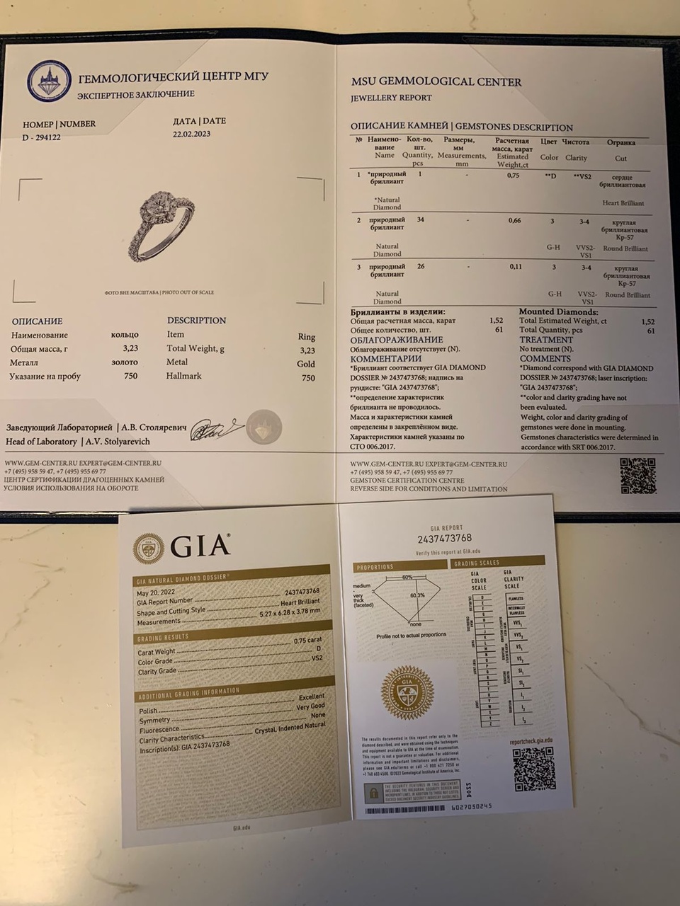 Вложение 3649940 Крупное кольцо из белого золота с бриллиантами 1.52ct Новое •Центральный бриллиант огранки «heart» 0.75ct D/VS2 •Бриллиантовое обрамление 0.77ct ( цвет 3/ чистота 3-4) •Белое золото 750 Размер 16,5 Сертификаты GIA и МГУ Полный подарочный комплект Цена 360 000 руб |
