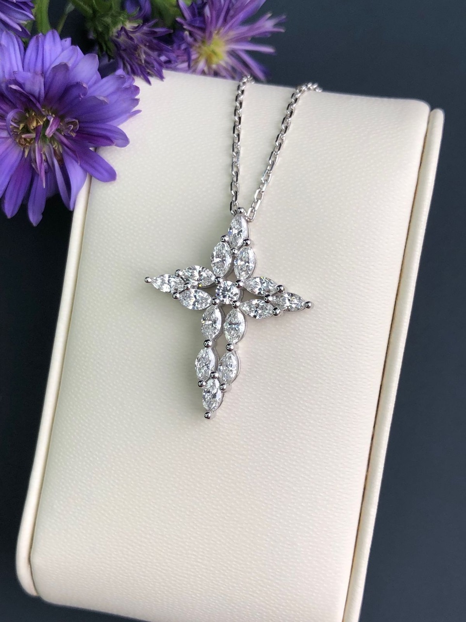 Подвеска крест белое золото с бриллиантами «marquise» 0.90ct VVS2 новая (сертификат МГУ) недорого