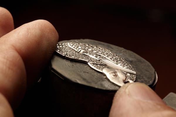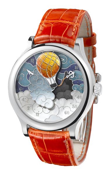 Сегодня уже ни у кого не вызывает сомнения факт, что ювелирный дом Van Cleef & Arpels сумел найти собственный путь в высший дивизион часового искусства, удачно соединив достижения механики со своим изначальным умением создавать шедевры ювелирного искусства. Остроумные поэтические усложнения (линия Poetic Complication) соседствуют здесь с часами, представляющими скорее уникальное ювелирное украшение, нежели хронометрический прибор (High Jewellery Watch). Удивляет мастерством исполнения и коллекция Extraordinary Dials, циферблаты для которой изготовляют мастера-эмальеры высочайшего уровня. В этом году компания снова представила на суд публики коллекционный набор из четырех моделей Les Voyages Extraordinairs, посвященый произведениям Жюля Верна. Четыре модели линии Midnight – Five weeks in a Balloon («Пять недель на воздушном шаре»), Twenty Thousand Leagues under the Sea («20 тысяч лье под водой»), A Journey to the Center of the Earth («Путешествие к центру Земли») и From the Earth to the Moon («Из пушки на Луну») – уложены в коллекционную деревянную шкатулку, которая сама по себе является произведением искусства маркетри. Сквозь отверстия в ее крышке можно любоваться циферблатами вышеупомянутых моделей, выполненных в технике эмали paillonne. Корпус часов изготовлен из белого золота, ремешок из кожи аллигатора. Механизм автоматический, калибра 800Р. Видимо, книга Жюля Верна «Пять недель на воздушном шаре» стала любимой для часовщиков компании, поскольку именно она вдохновила марку на создание не только одного из циферблатов в Les Voyages Extraordinairs, но и модели линии Poetic Complication. На циферблате этих часов изображен воздушный шар, несущийся по жемчужному (в прямом и переносном смысле) небу. Корпус из белого золота может быть по желанию заказчика инкрустирован бриллиантами. Механизм JLC 846 оснащен уникальным ретроградным модулем, разработанным специально для Van Cleef & Arpels. Часы демонстрируются на шкале слева. Их отсчитывает птица, движущаяся по дуге снизу вверх. А минуты указывает якорь воздушного шара, перемещающийся по правой шкале, от отметки «0» сверху до цифры «60» внизу циферблата. На задней крышке нанесена памятная гравировка. Ремешок из кожи аллигатора с золотой застежкой. Серия пронумерована. И, продолжая тему путешествия на воздушном шаре, Van Cleef & Arpels предложила серию Extraordinary Dials, разделенную на две темы: «Африка» и «Антарктика» – по четыре сюжета в каждой теме. Циферблаты действительно уникальны. Используя технику эмали шамплеве и кабошон, резьбу по перламутру, чеканку по золоту, инкрустацию бриллиантами, мастера создали настоящие картины со слонами, гиппопотамами, жирафами, пингвинами и касатками. Забавно, но в теме «Антарктика» присутствует картинка из жизни белых медведей, которые, как известно, в Антарктиде не водятся. Корпуса всех часов относятся к линии Lady Arpels, выполнены из белого золота и инкрустированы бриллиантами. Ремешок из кожи аллигатора оснащен золотой застежкой, инкрустированной бриллиантами. Каждая модель выпущена ограниченной серией в 22 экземпляра. Наконец, нельзя не сказать об уникальном произведении ювелирного искусства, которое может показывать время. Эти часы – Makis décor watch, выпущенные в единственном экземпляре, представляют собой настоящий уголок джунглей, возможно, Мадагаскара на запястье. Золотые ветви и листья скрывают фигурки резвящихся лемуров. По крайней мере, животные очень напоминают именно лемуров. Но эт