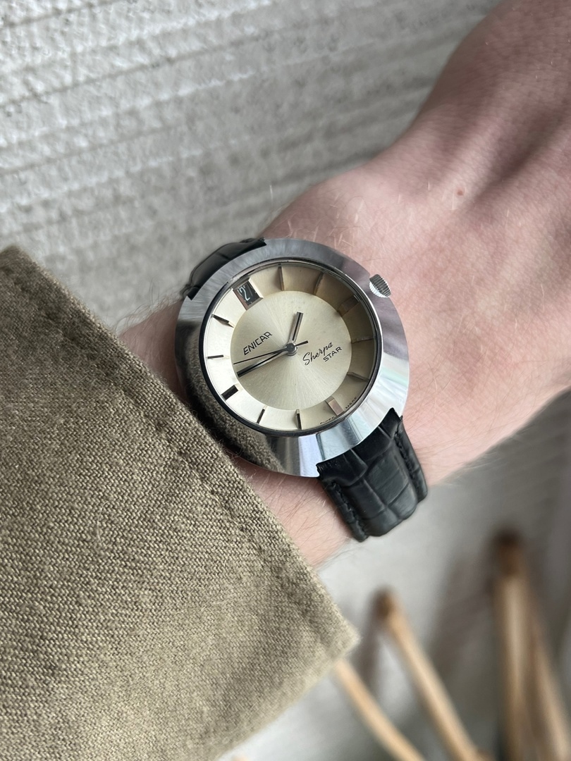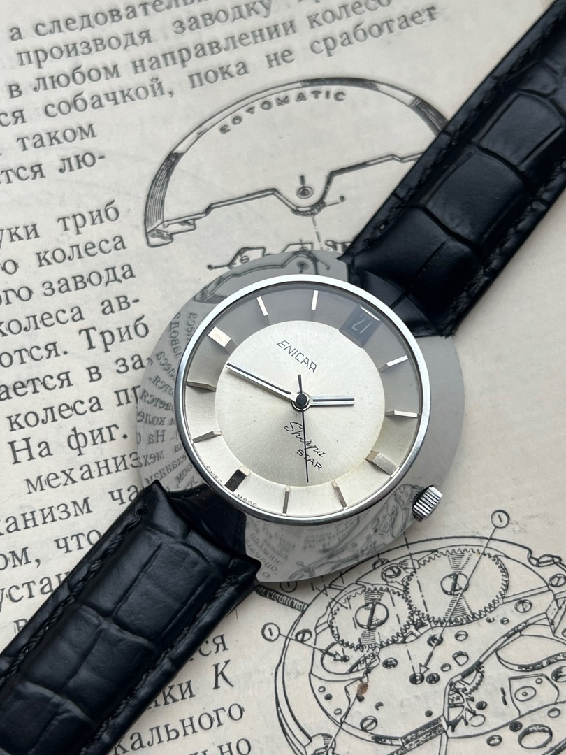 Пол: мужские Год покупки: 1967 БУ часы, состояние: A (хорошее) http://forum.watch.ru/images/market-question.png Полировка: нет Цена: 23 000 руб. (продажа) Коробка: нет Документы: нет Вашему внимаю представлена жемчужна швейцарского стиля с вулканообразным корпусом ! Enicar Sherpa Star Automatic Часы выполнены в необычном для 60-ых годов корпусе, в размере 36мм Форма не только корпуса оставляет эмоции, а еще и изогнутый по контуру циферблат и календарный диск черного цвета Внутри часов располагается калибр AR-1145, пройдено полное обслуживание, ведет себя великолепно для своего возраста Ремень часов новый Вложение 3690553 Вложение 3690554Вложение 3690555 Вложение 3690556 Вложение 3690557 Вложение 3690558 Вложение 3690559 Вложение 3690560 Вложение 3690561 Вложение 3690562 Вложение 3690563 |