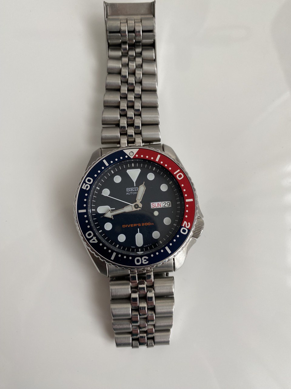 Пол: мужские Год покупки: 2019 БУ часы, состояние: AA (отличное) http://forum.watch.ru/images/market-question.png Полировка: нет Цена: 25 000 руб. (продажа) Коробка: нет Документы: нет Seiko SKX009K2 Дайверская классика в расцветке Pepsi! Калибр 7S26 Корпус и браслет из нержавеющей стали 316L Браслет с раскладывающейся застежкой. Застежка с системой блокировки. Окошко дня недели и даты на "3 часа" Точность хода не хуже +/-15 секунд в сутки. В механизме 21 камень, частота 21600 полуколебаний в час. Запас хода до 41 час. Безель вращается в одну строну (120 щелчков). Завинчивающаяся задняя крышка. Завинчивающаяся заводная головка с защитой находится в положении 4 часа. Минеральное стекло повышенной прочности Hardlex Люминесцентные стрелки и метки LumiBrite Водостойкость 200м (20bar). Размер корпуса 42.5х46мм Толщина 13.2мм Вес 178г Заказывал на форуме у deniswatch. Носил редко - часы в отличном состоянии. Коробка и документы были утеряны при переезде. Самовывоз - СПб Вложение 3701152 Вложение 3701153 Вложение 3701154 Вложение 3701155 |