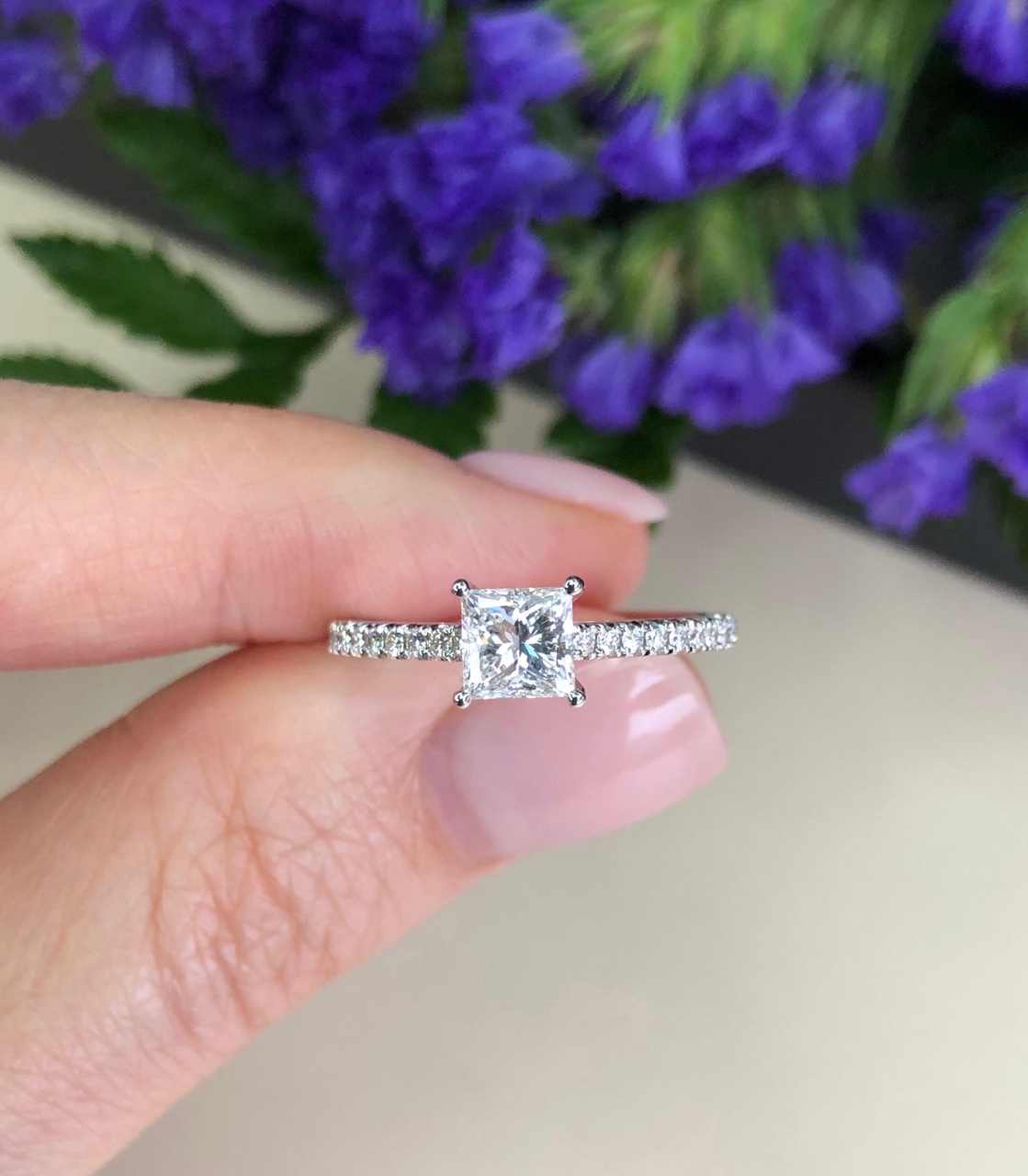 Кольцо белое золото с бриллиантом 0.63ct E/VS2+0.16ct паве новое (GIA и МГУ) недорого