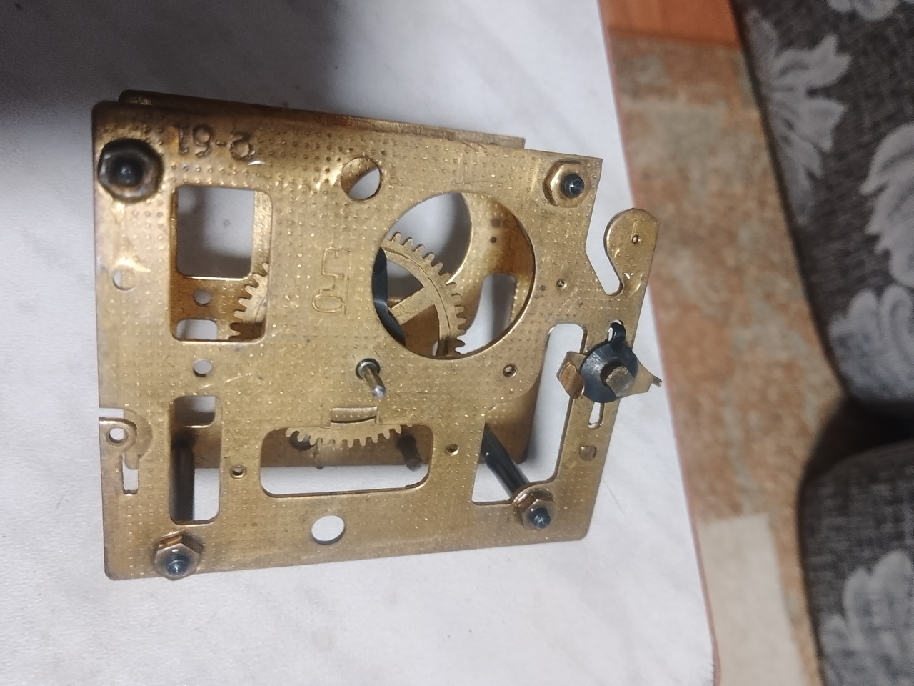 Добрый день уважаемые форумчане, прошу помочь с восстановлением часов СЧЗ с деревянным корпусом. Сломана цапфа анкерного колеса. Может у кого найдется такое? или остаток похожей оси чтобы соединить через бандажик. Любой совет, подсказка, помощь приветствую. Фото колеса и плит механизма приложил для понимания предмета.