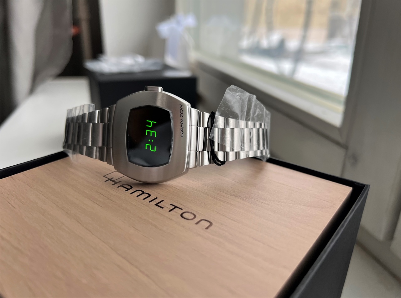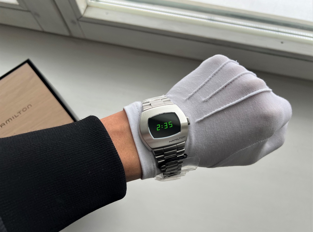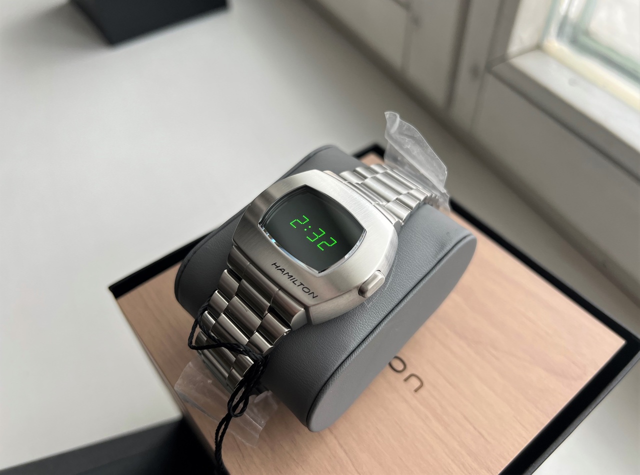 [ЛЕГЕНДА] - HAMILTON DIGITAL PSR - AMERICAN CLASSIC / ЗЕЛЕНАЯ ЦИФРОВАЯ ИНДИКАЦИЯ / СТАЛЬ / 40х34ММ