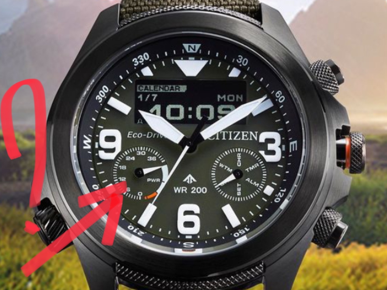Видимо, индикатор уровня генерации заряда в текущий момент (уровня освещенности). Вот цитата: " Sensitivity brightness level indication: This is a unique technology of CITIZEN. By sensing the light intensity on the dial, it displays the current power generation level (a total of 7 levels), so the wearer can know the charging level at any time".
