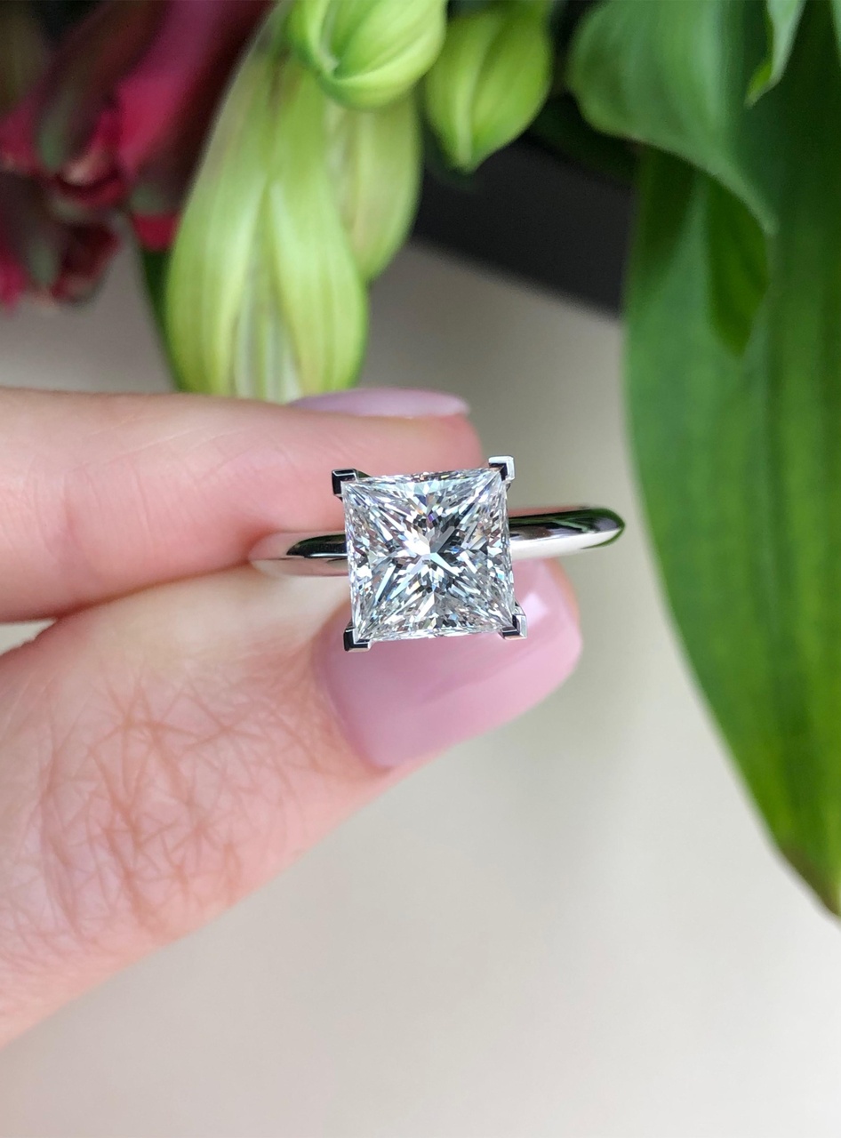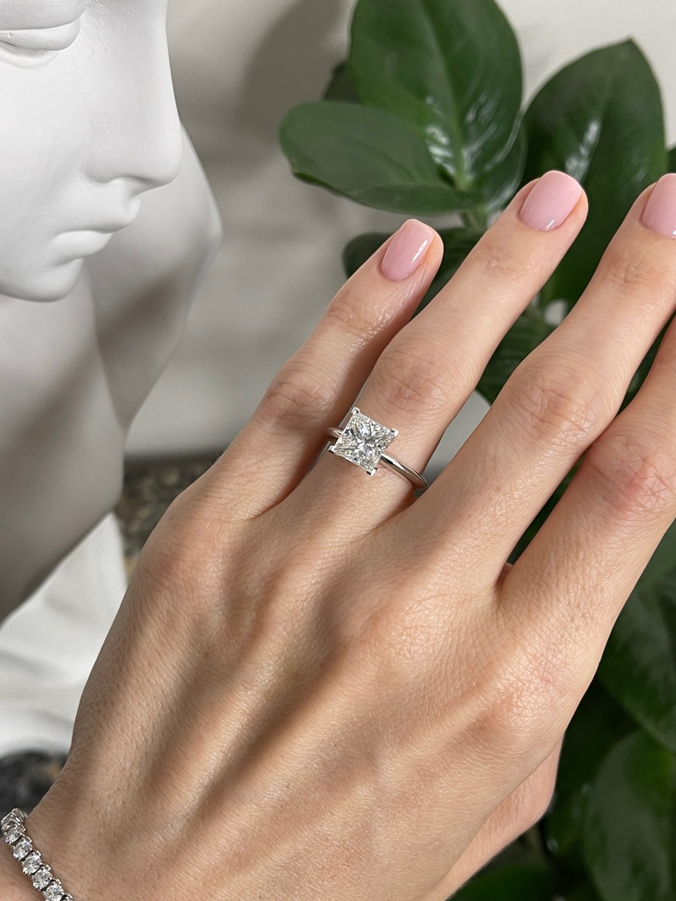 Кольцо белое золото с бриллиантом 2.25ct F/I1 новое (GIA и МГУ) недорого