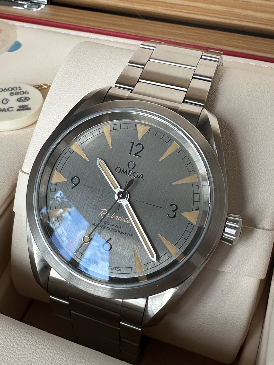 Пол: мужские Год покупки: 2024 БУ часы, состояние: AAA (идеальное) http://forum.watch.ru/images/market-question.png Полировка: нет Цена: 270 000 руб. (продажа) Коробка: есть Документы: есть Вложение 3859126 Вложение 3859127 Вложение 3859128 Вложение 3859129 Вложение 3859130Продаю часы Omega Seamaster Railmaster Co-axial Master Chronometer 40 mm 220.10.40.20.06.001. Приобретены в июле 2024 года. Полный комплект (плюсом отдам оригинальный ремешок Nato strap leather brown), состояние близкое к новым часам. |